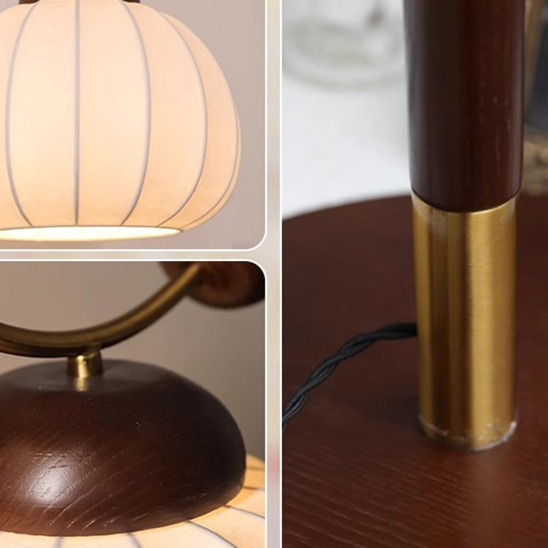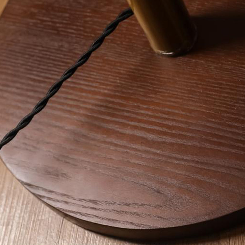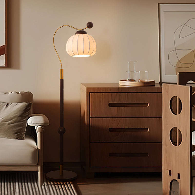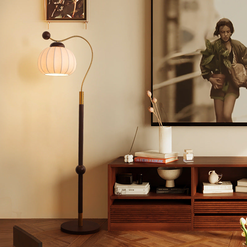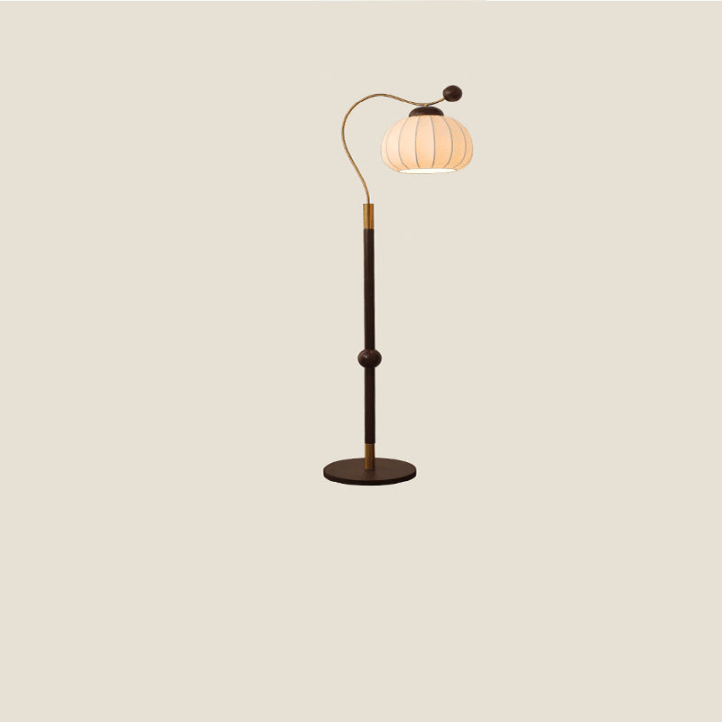 Traditional Japanese Silk Round Shade Wood Aluminum Pole 1-Light Standing Floor Lamp For Living Room