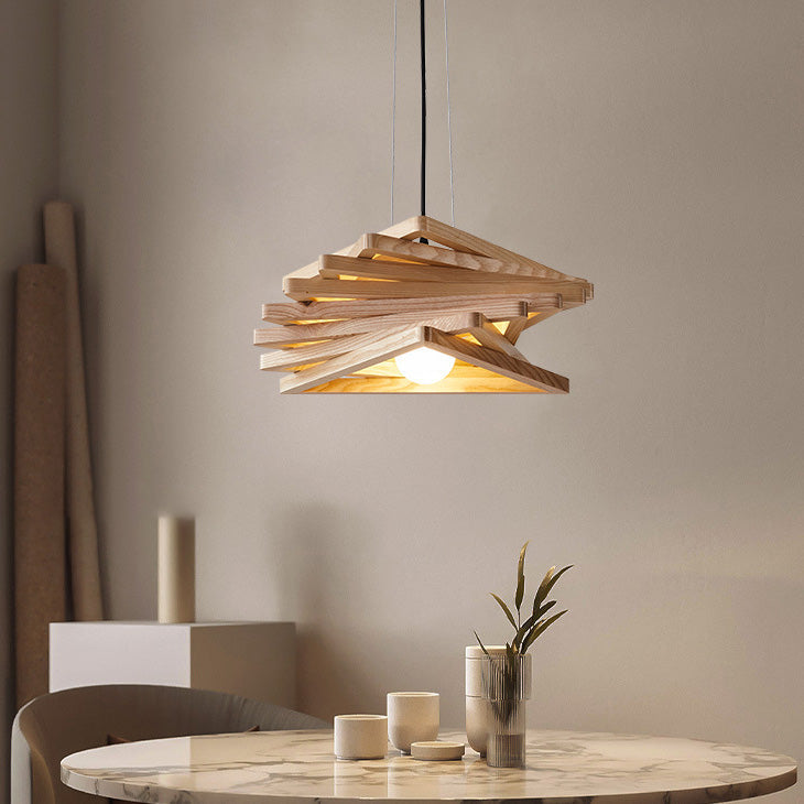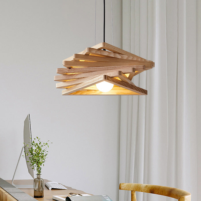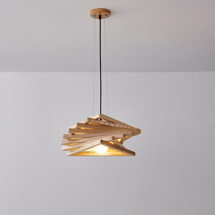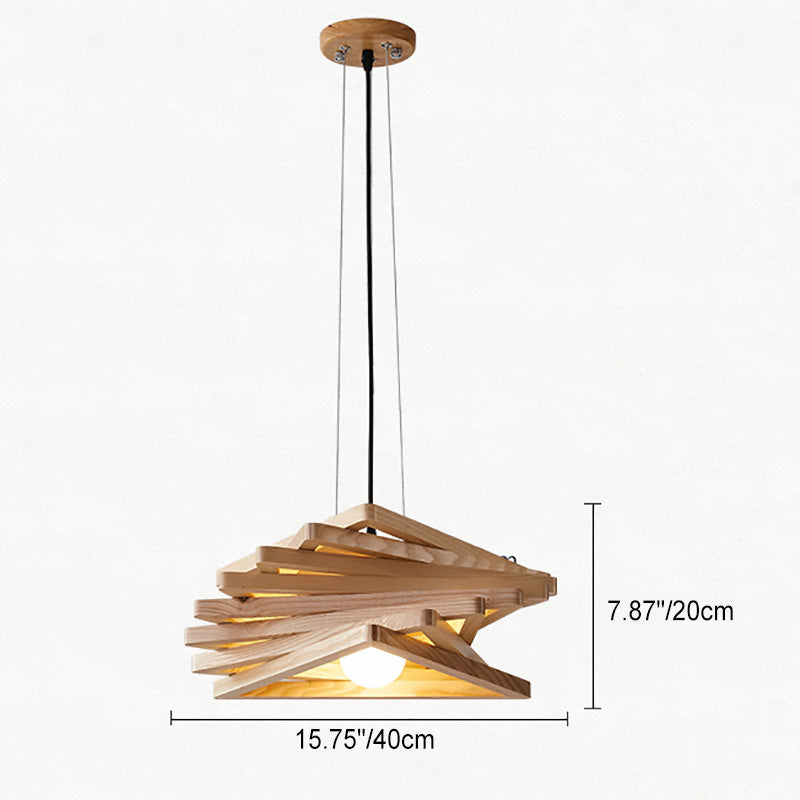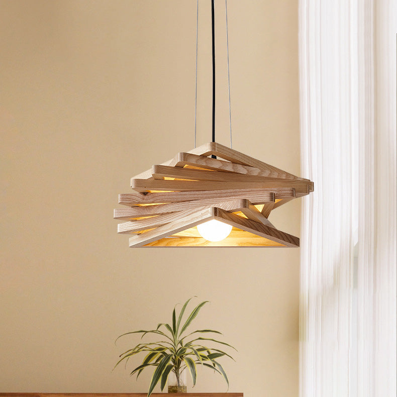 日本の伝統的な木製三角形の渦巻き模様の1灯ペンダントライト(ダイニングルーム用)