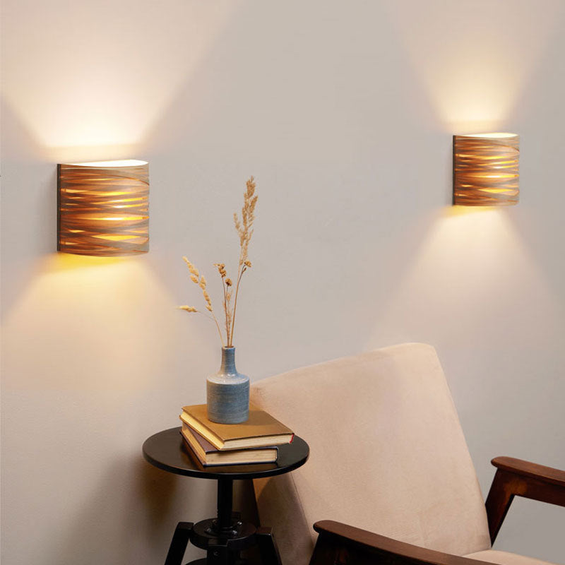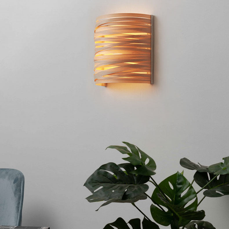 日本の伝統的な木製ベニヤアーチ 1灯壁付け照明 ベッドサイド用