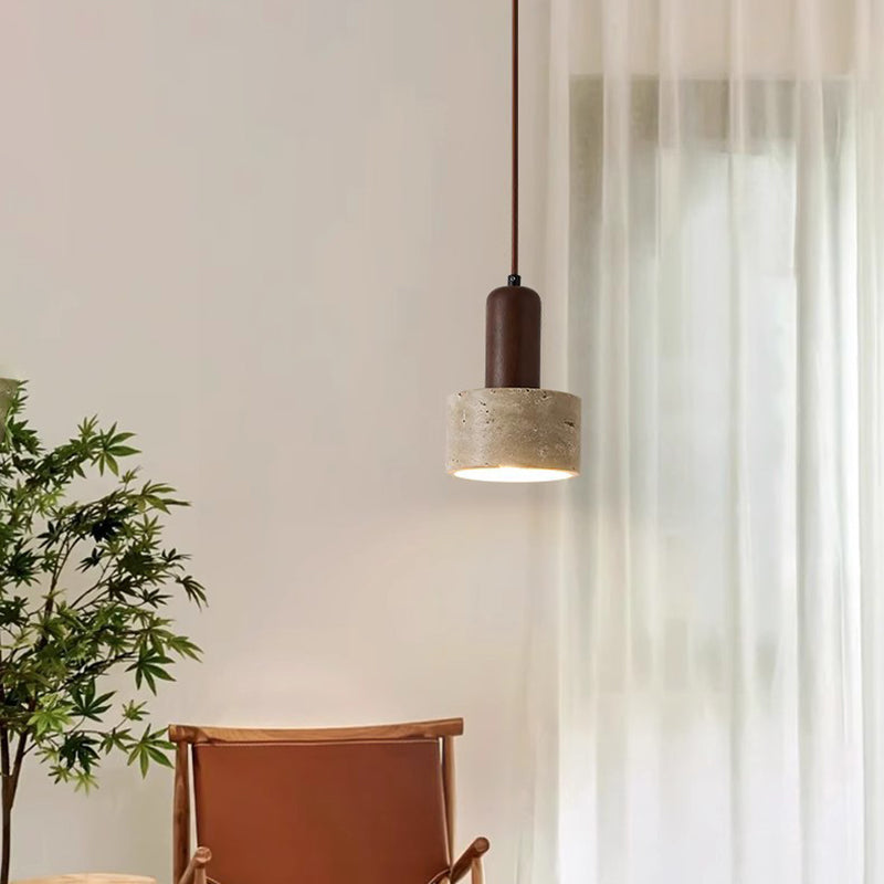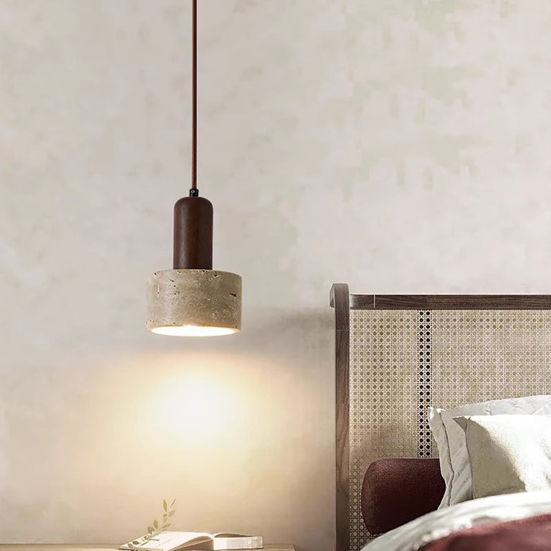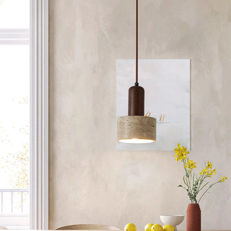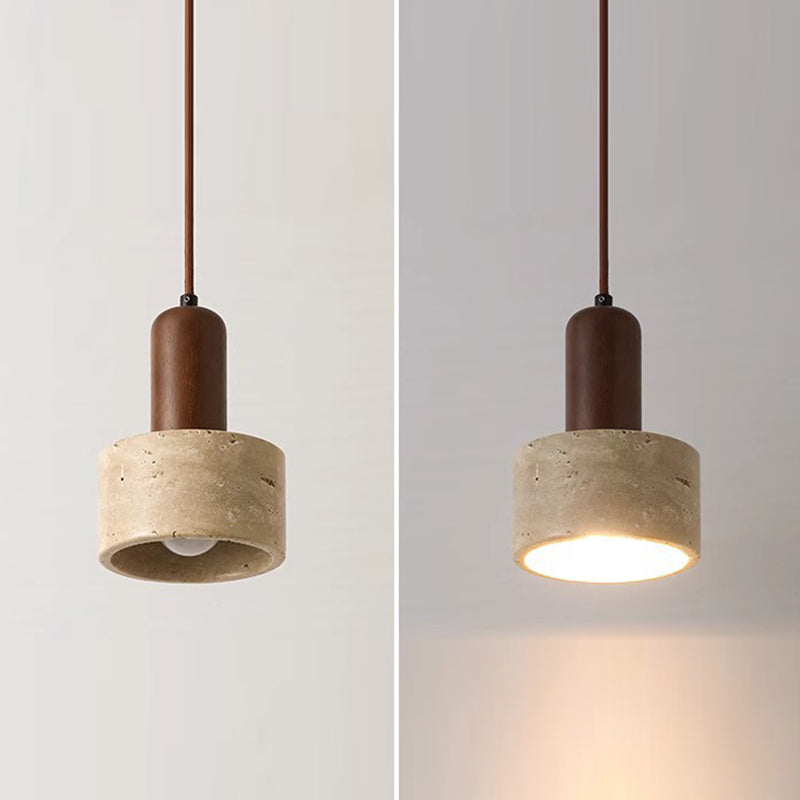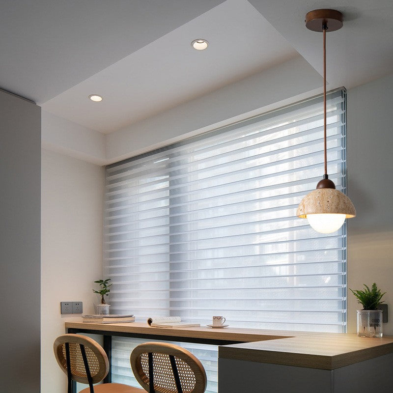 伝統的な日本の黄色のトラバーチン木製ドームシリンダー1灯ペンダントライトリビングルーム用
