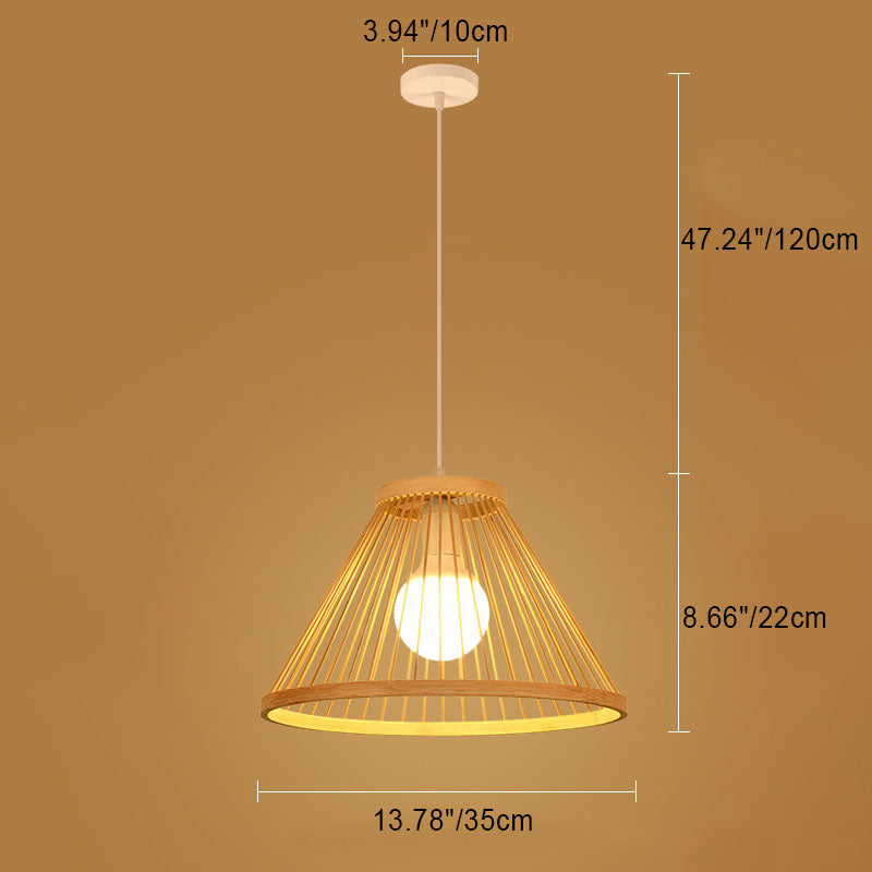 伝統的な日本の禅竹編み半円錐型1灯ペンダントライト(リビングルーム用)