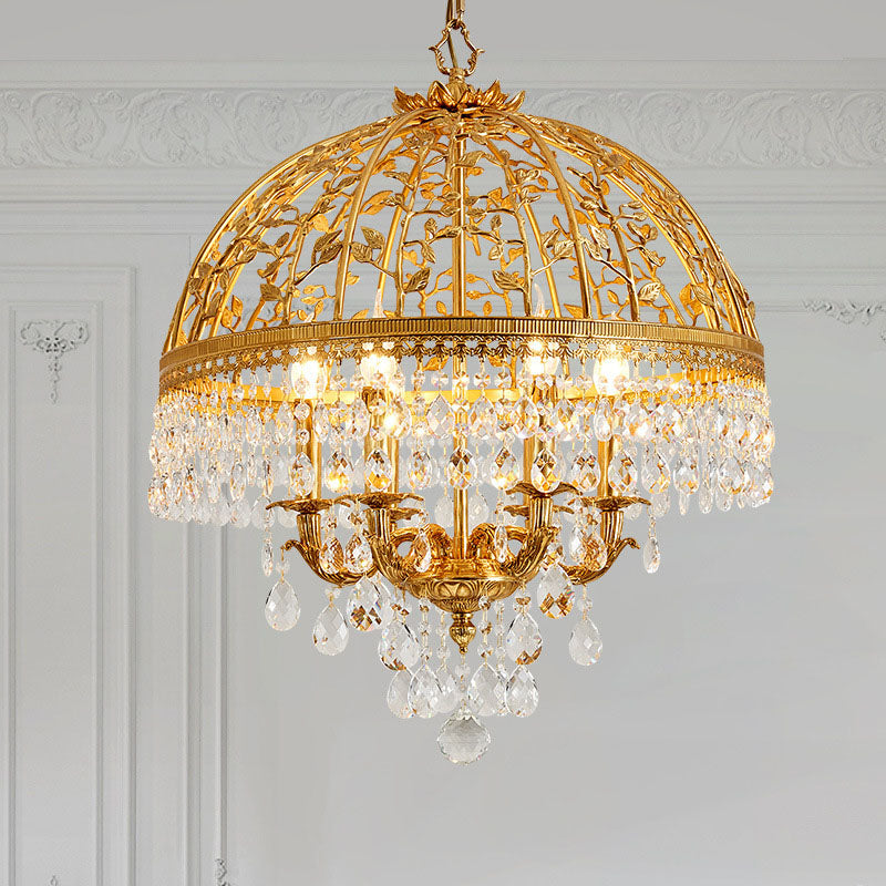 伝統的な高級銅製クリスタルドームブランチキャンドルホルダー6灯シャンデリアダイニングルーム用
