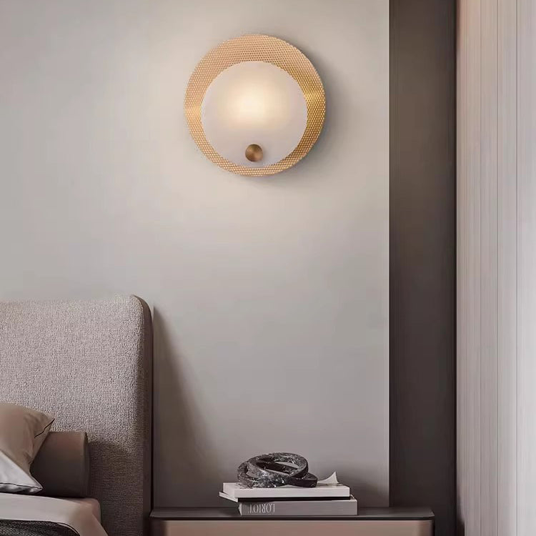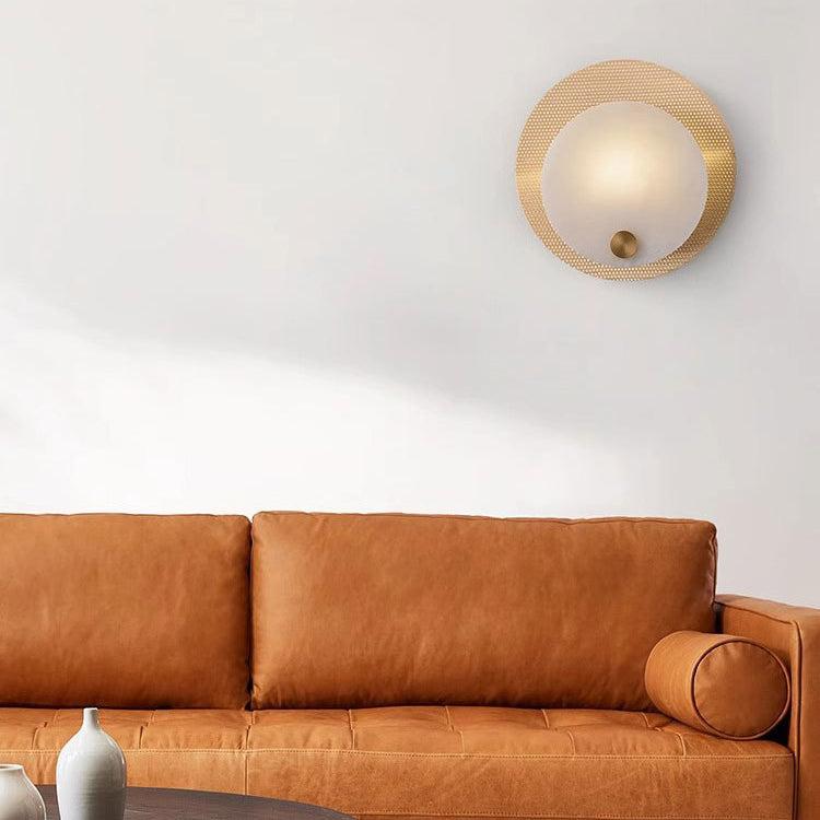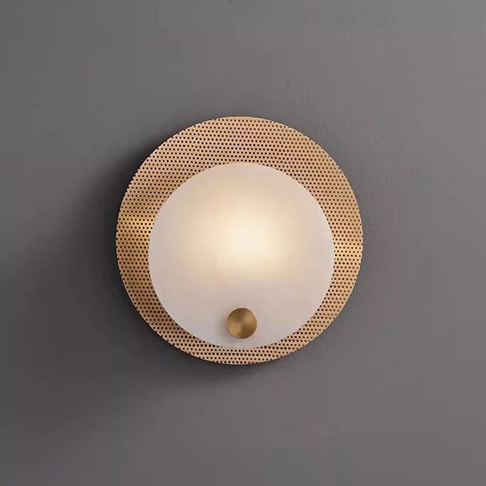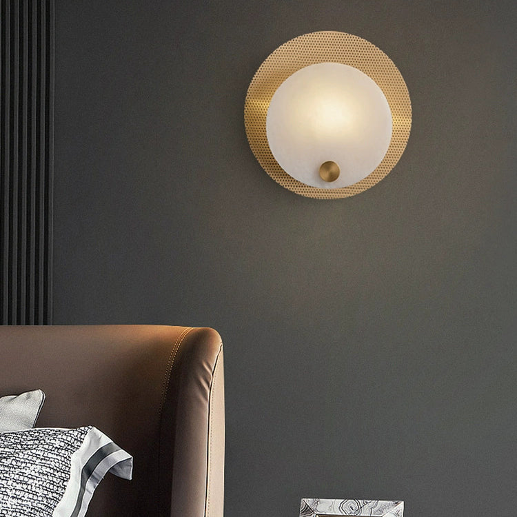 リビングルーム用の伝統的な高級ラウンド銅大理石1ライト壁取り付け用燭台ランプ