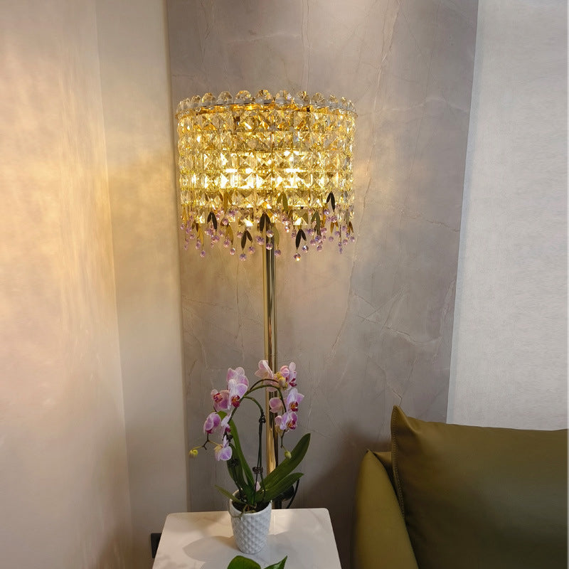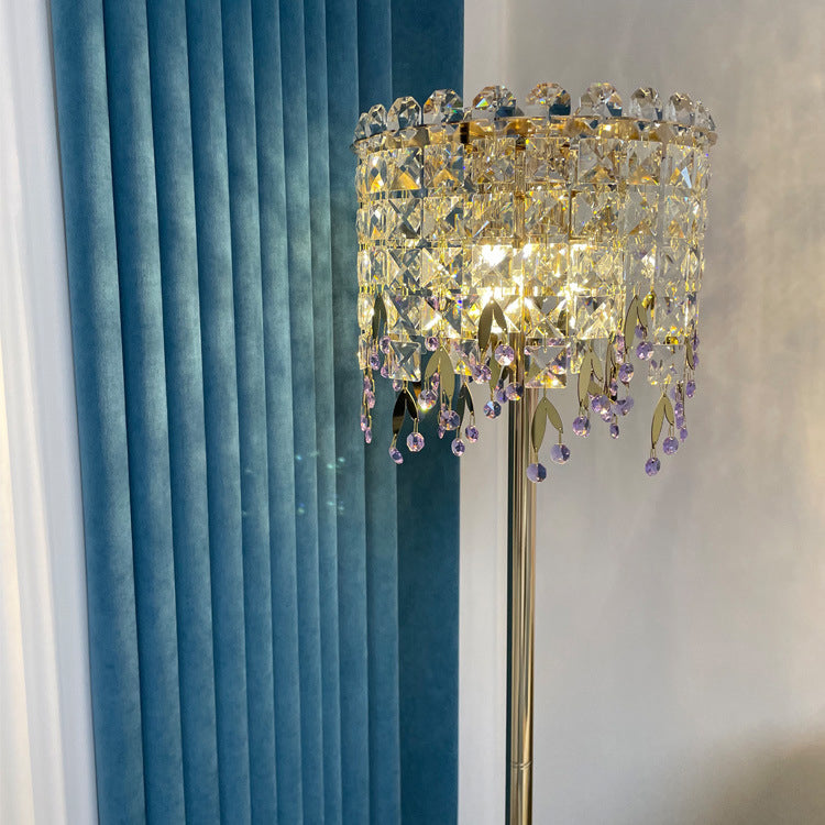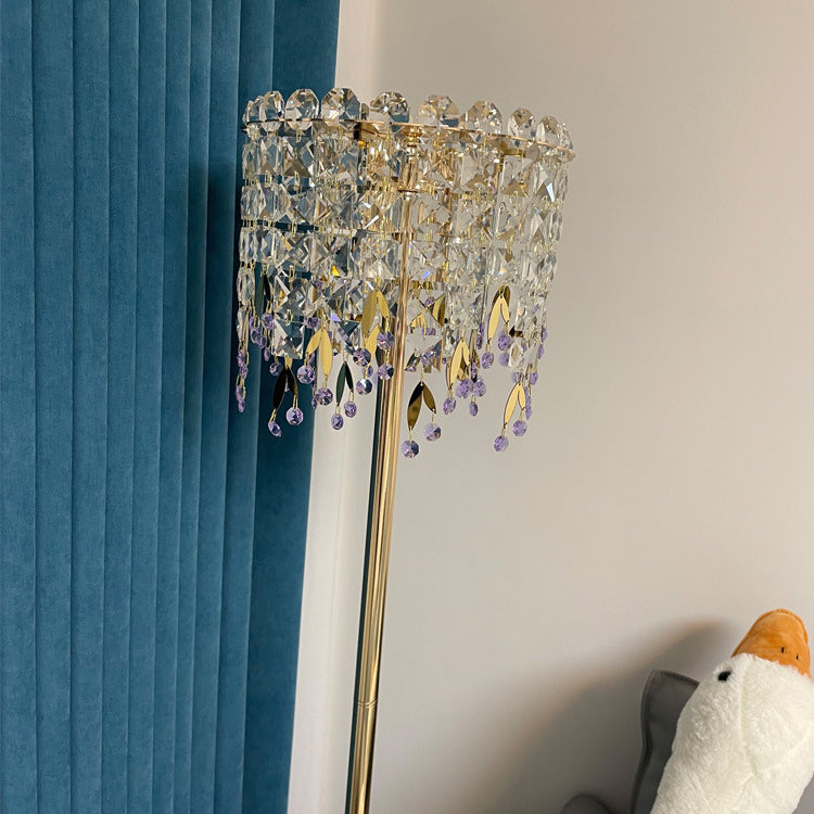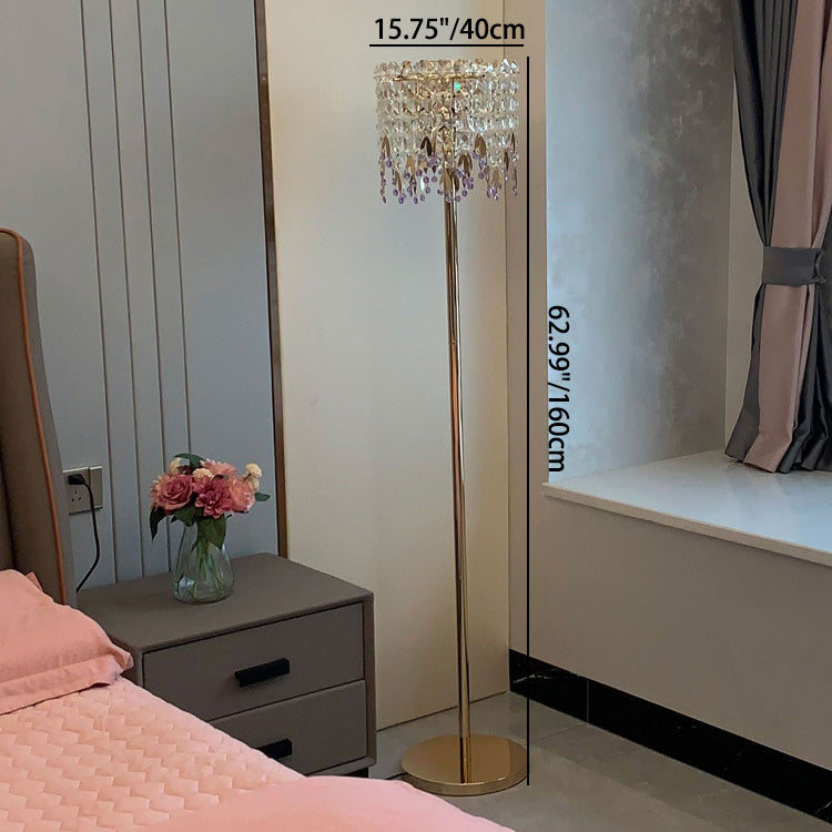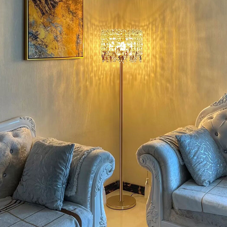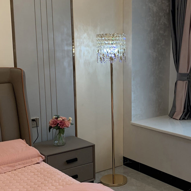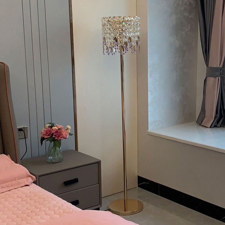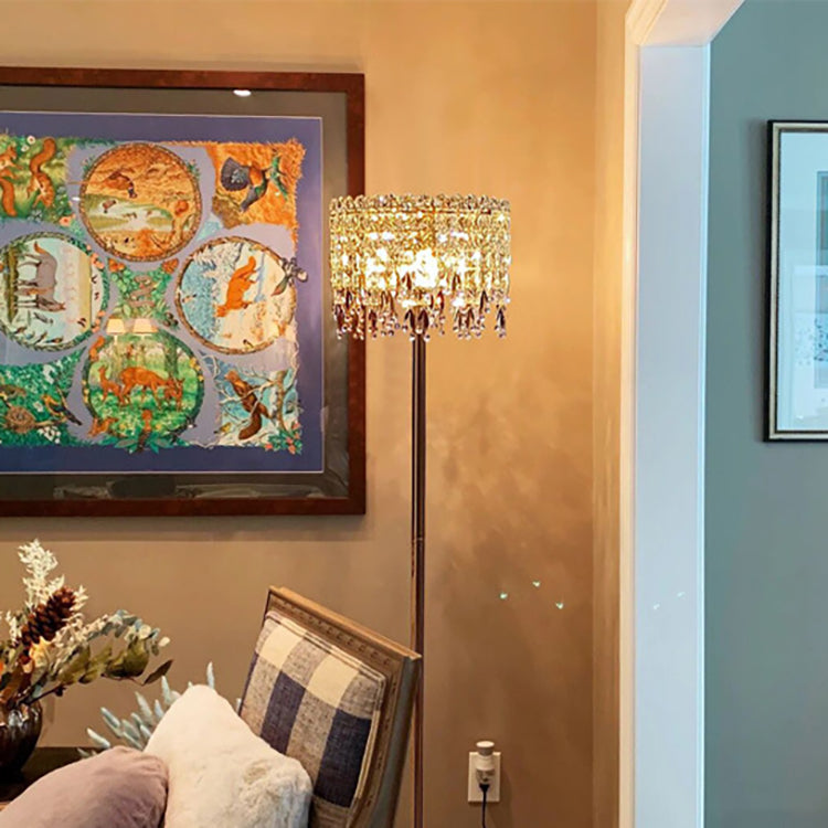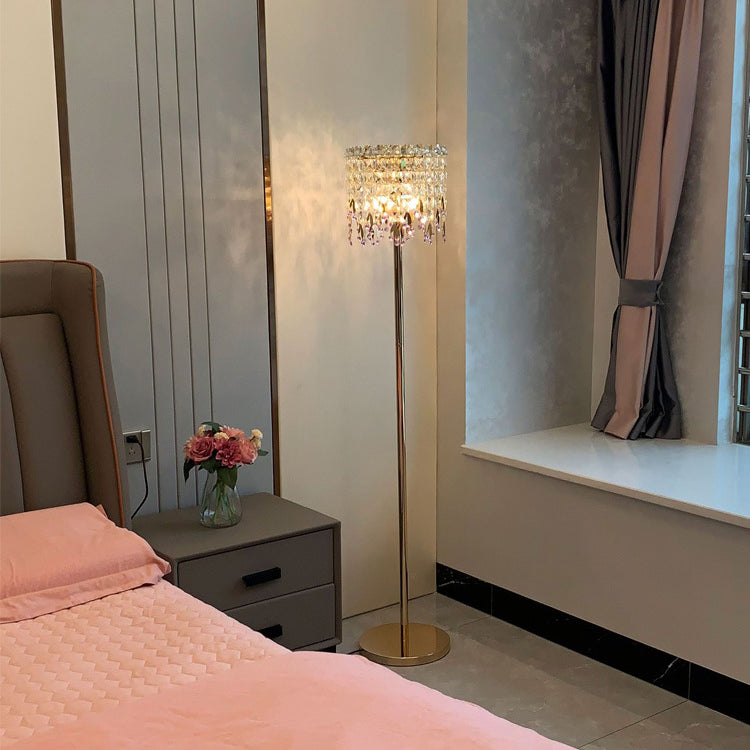 Traditional Luxury Round Crystal Stainless Steel Iron 1-Light Standing Floor Lamp For Bedroom