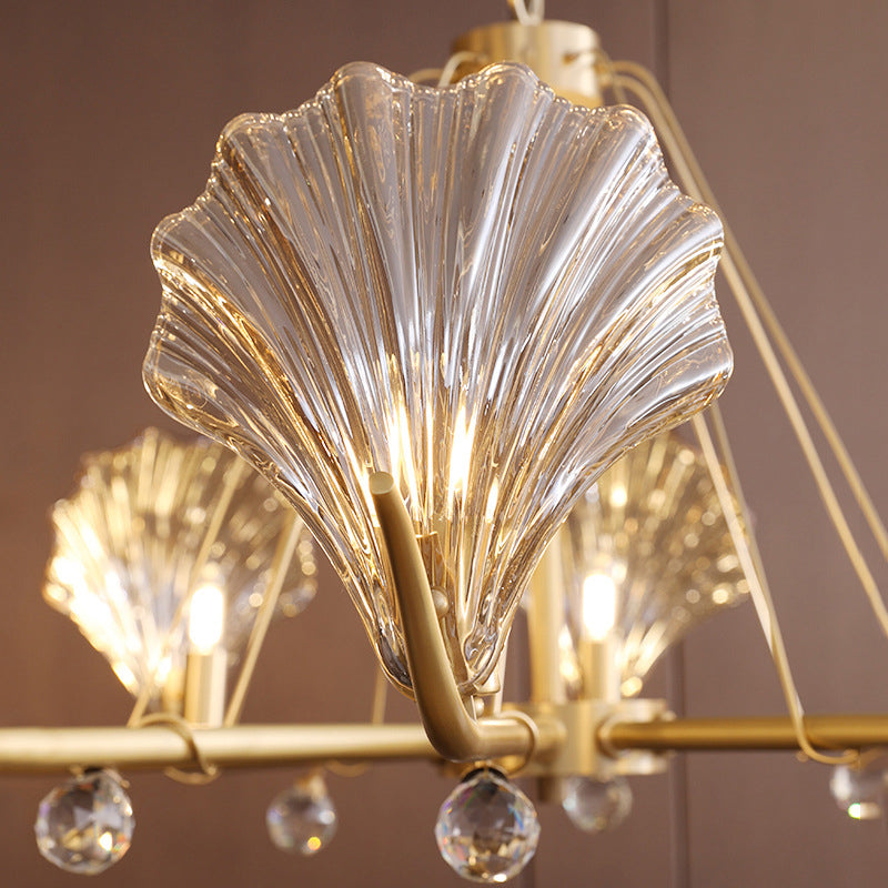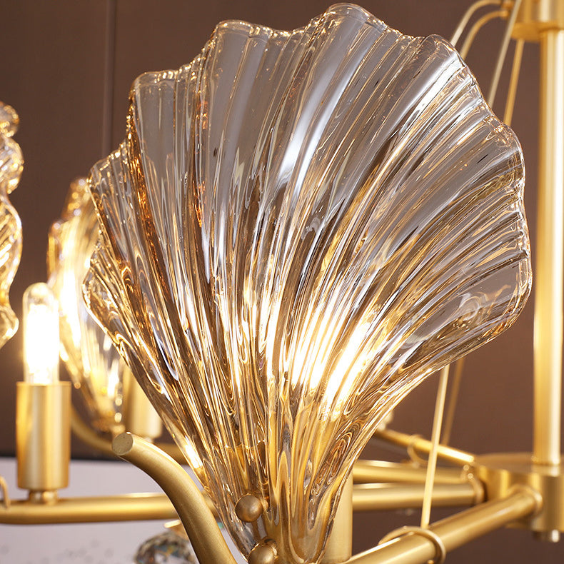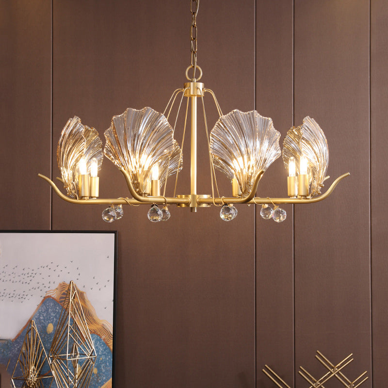 リビングルーム用の伝統的な高級シェル銅ガラス4/6/8ライトシャンデリア