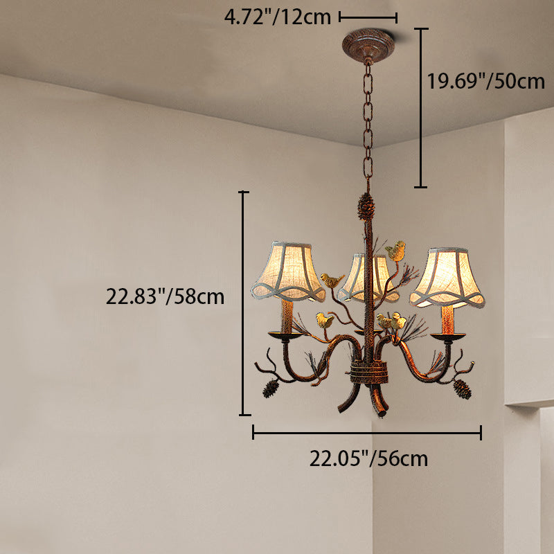 伝統的な素朴な鳥の模様のアイアンファブリック3/6灯シャンデリア(リビングルーム用)