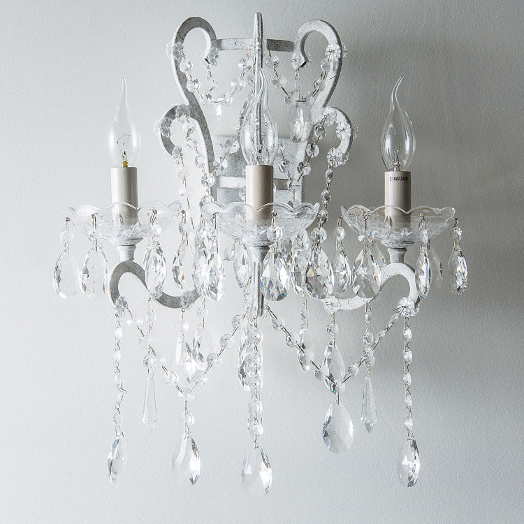 伝統的な素朴な枝の曲線ポール燭台クリスタルアイアン3ライト壁取り付け用燭台リビングルーム用ランプ