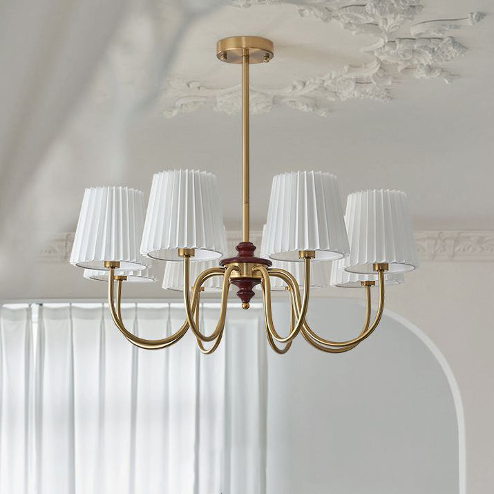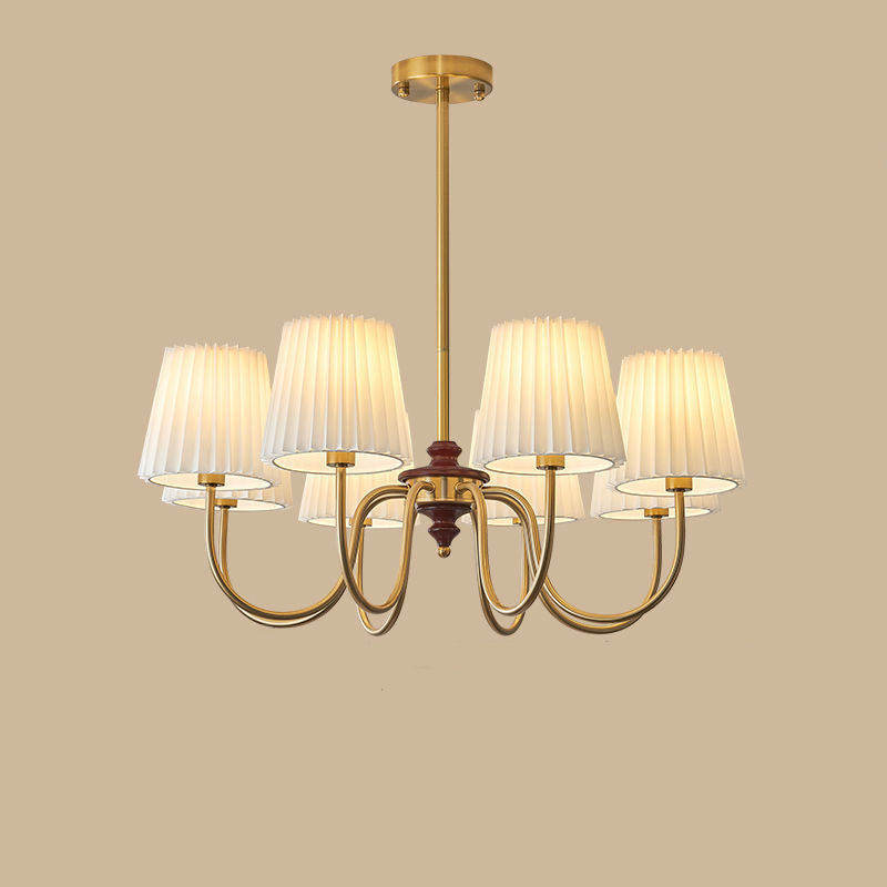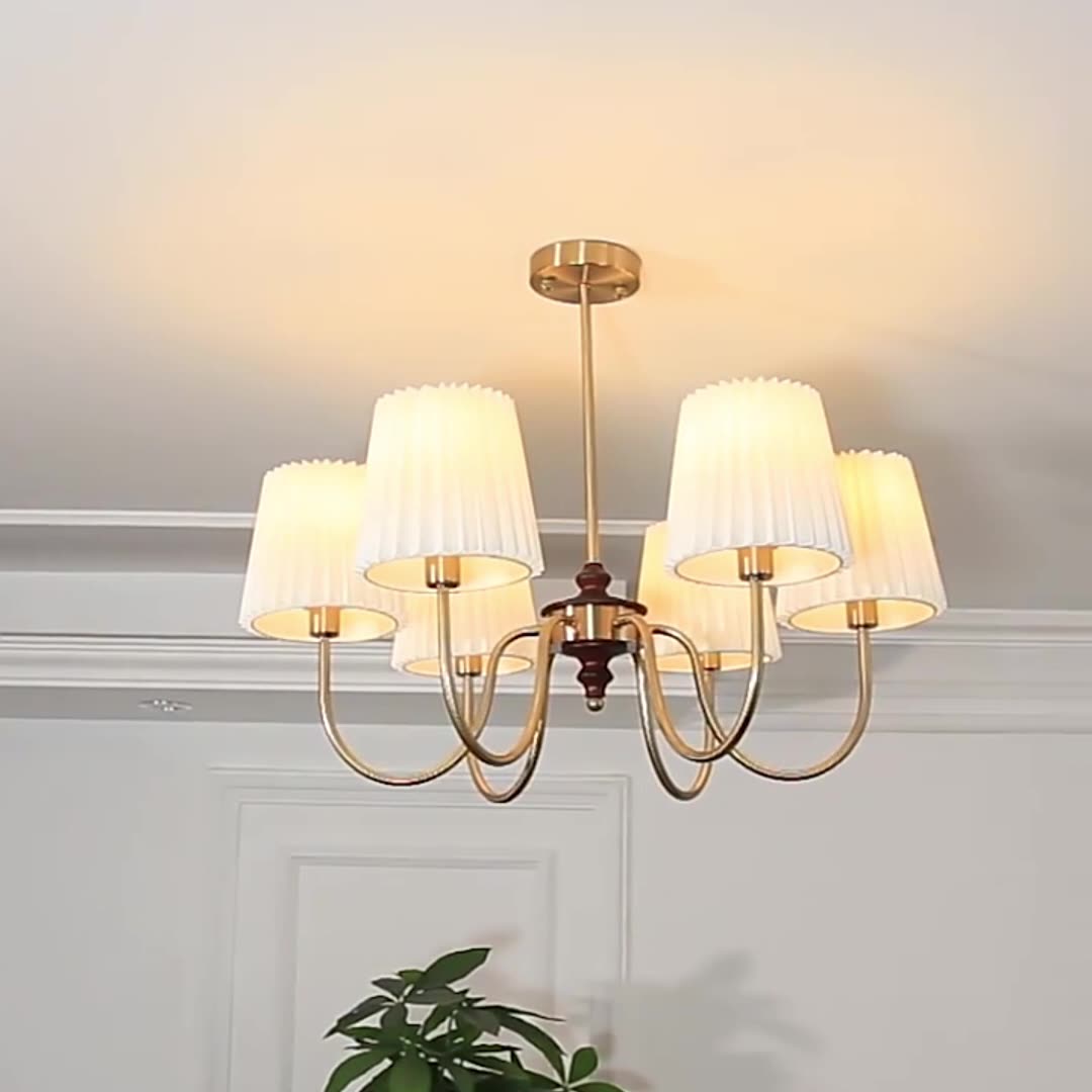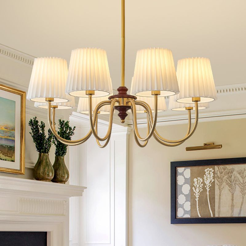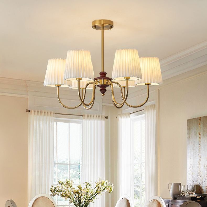 伝統的な素朴な枝のカーブロッドキャンドルホルダー、プリーツファブリックシェード、アイアンウッドフレーム、4/6/8ライトシャンデリア、リビングルーム用