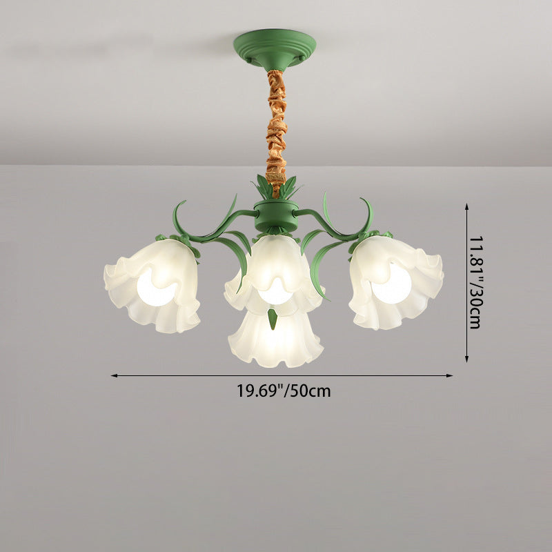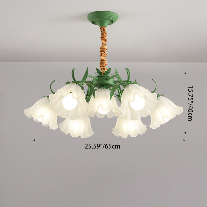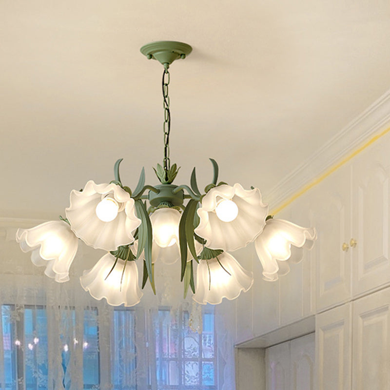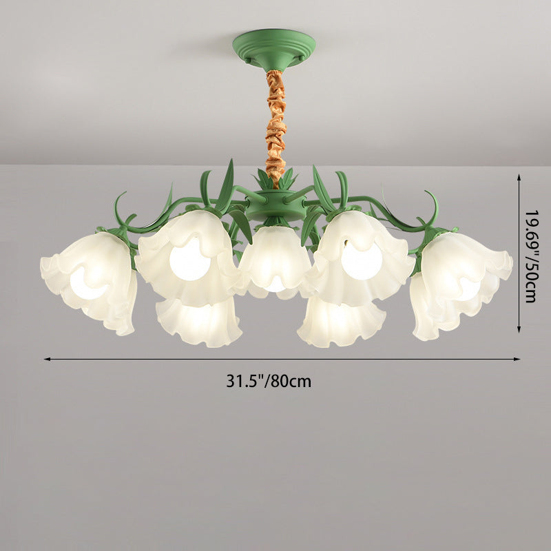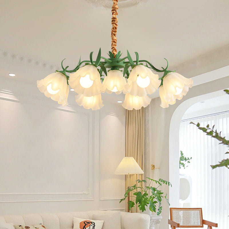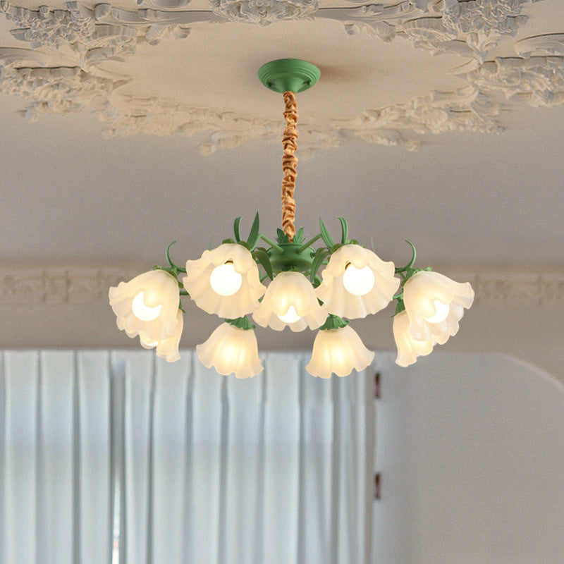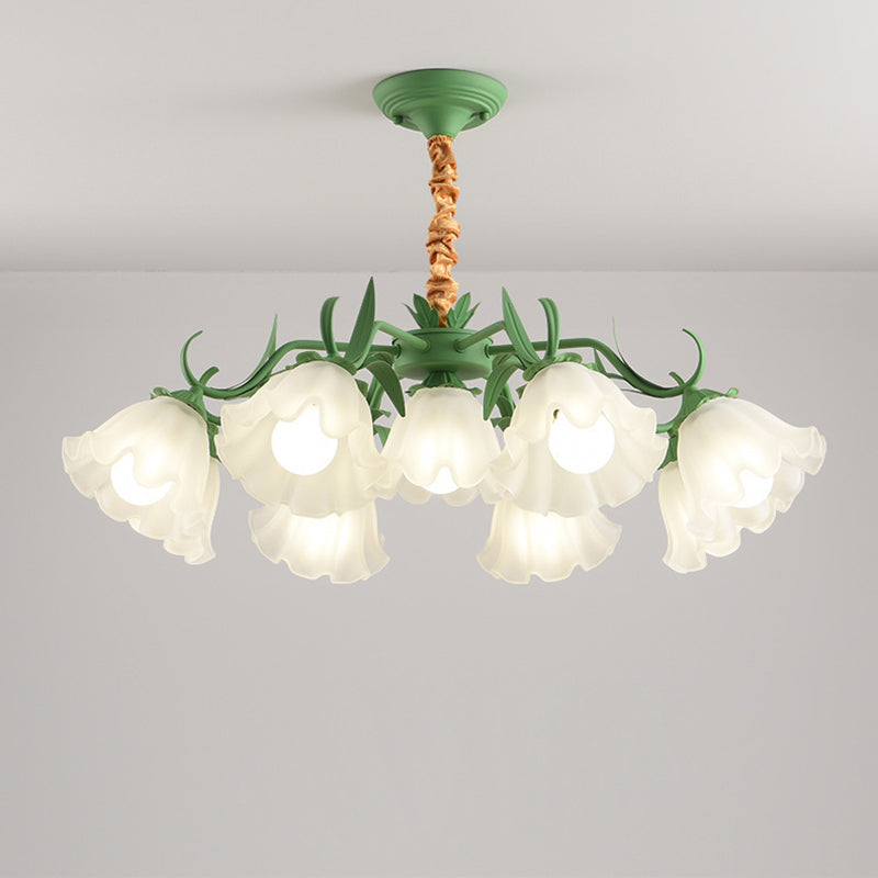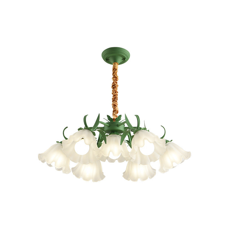 伝統的な素朴な花柄の葉と枝の丸いガラスの鉄製シャンデリア(リビングルーム用)4/6/7/9灯