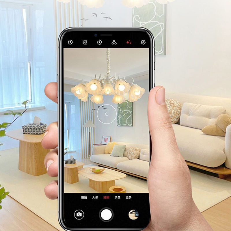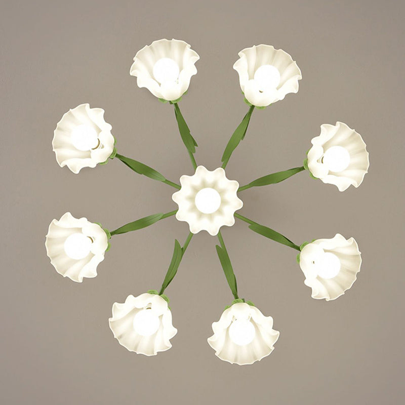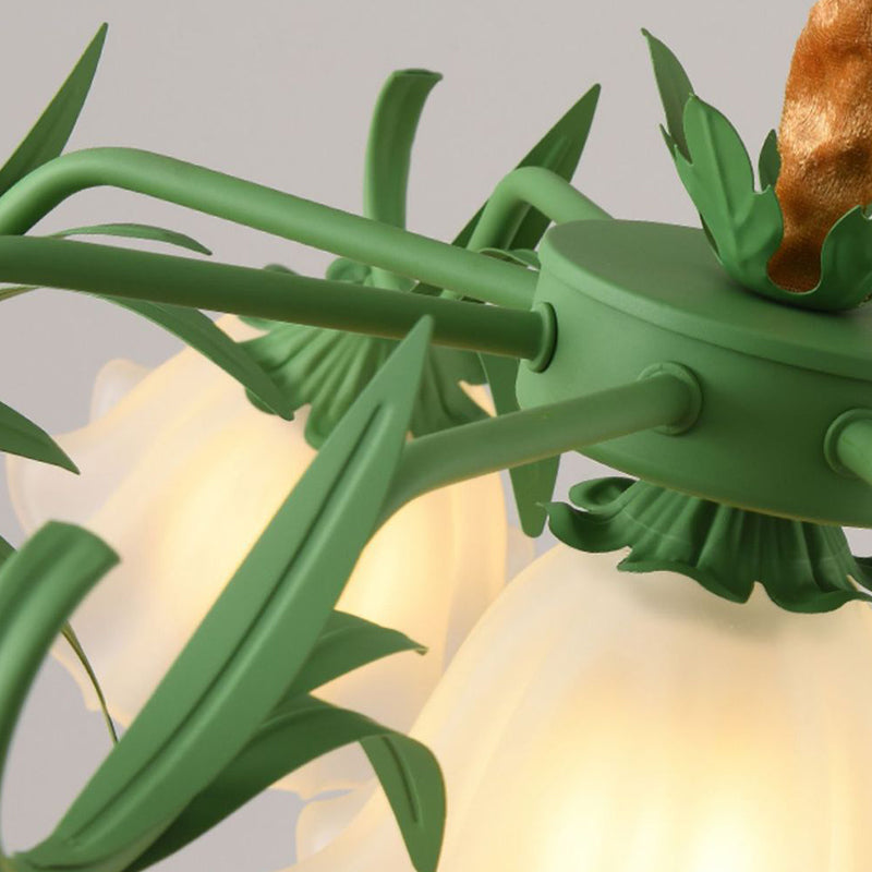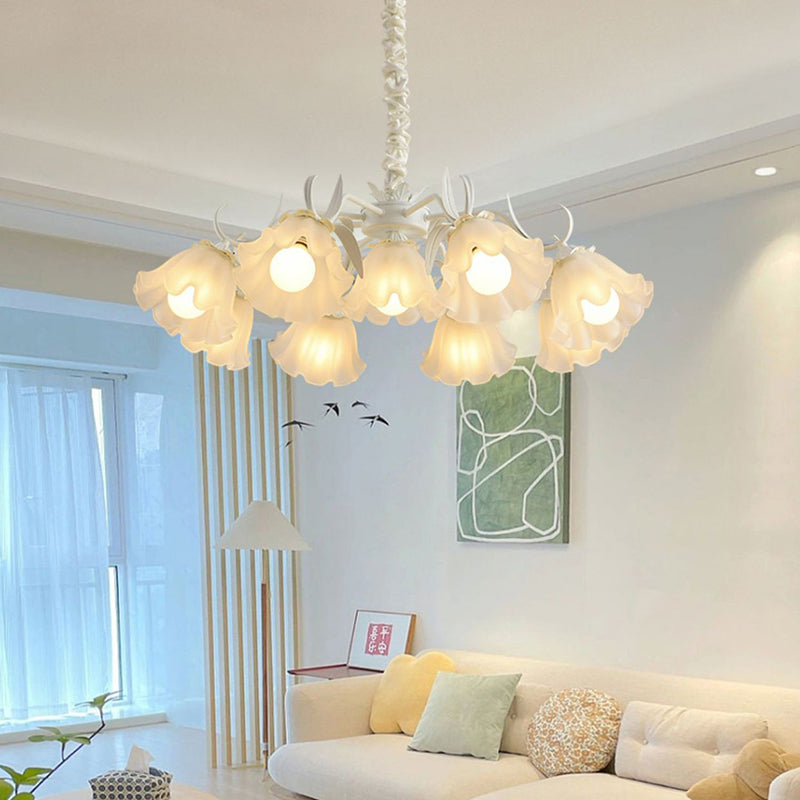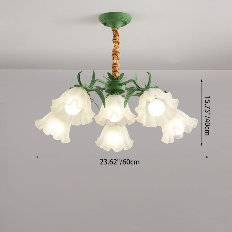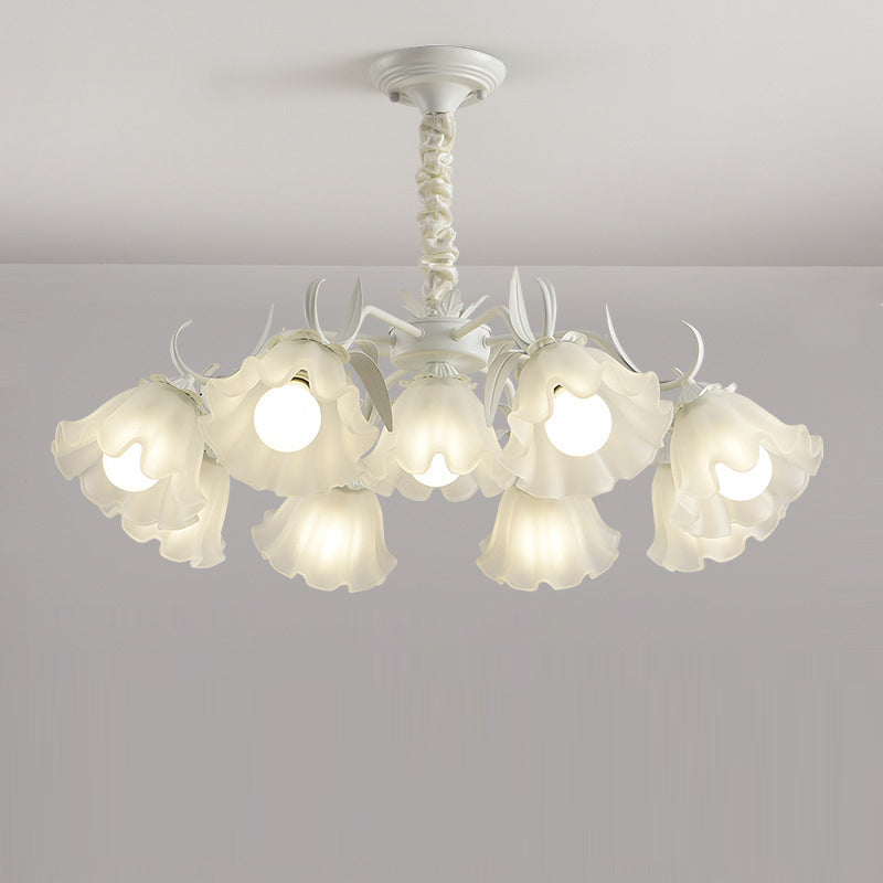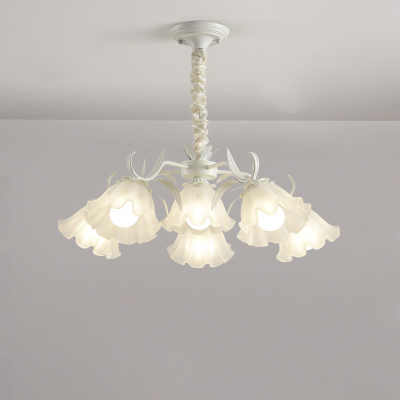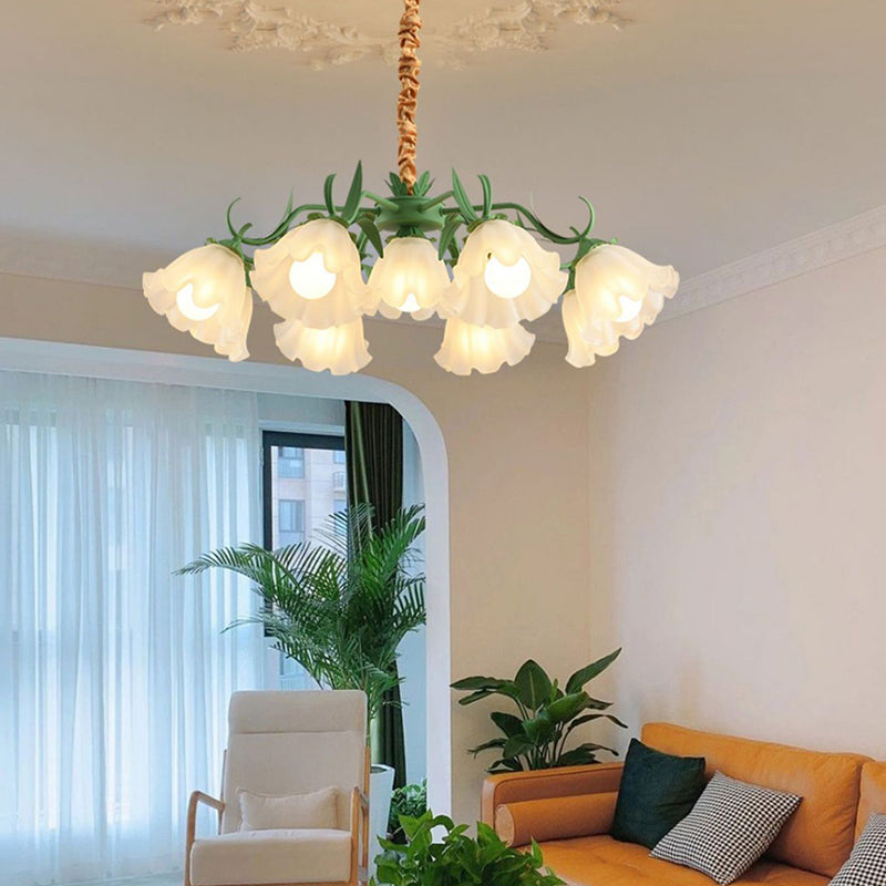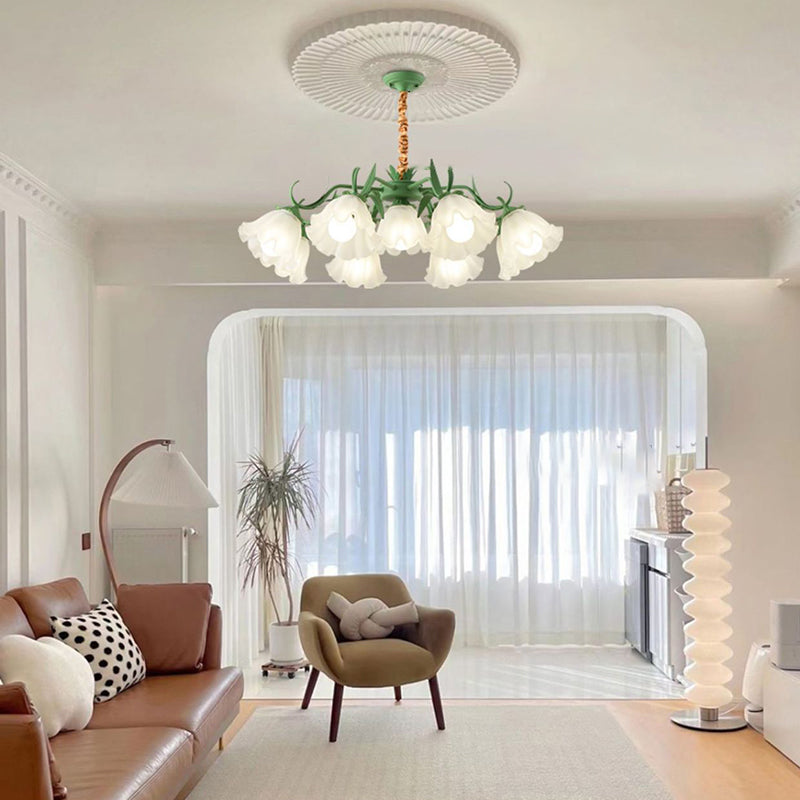 伝統的な素朴な花柄の葉と枝の丸いガラスの鉄製シャンデリア(リビングルーム用)4/6/7/9灯