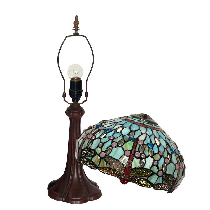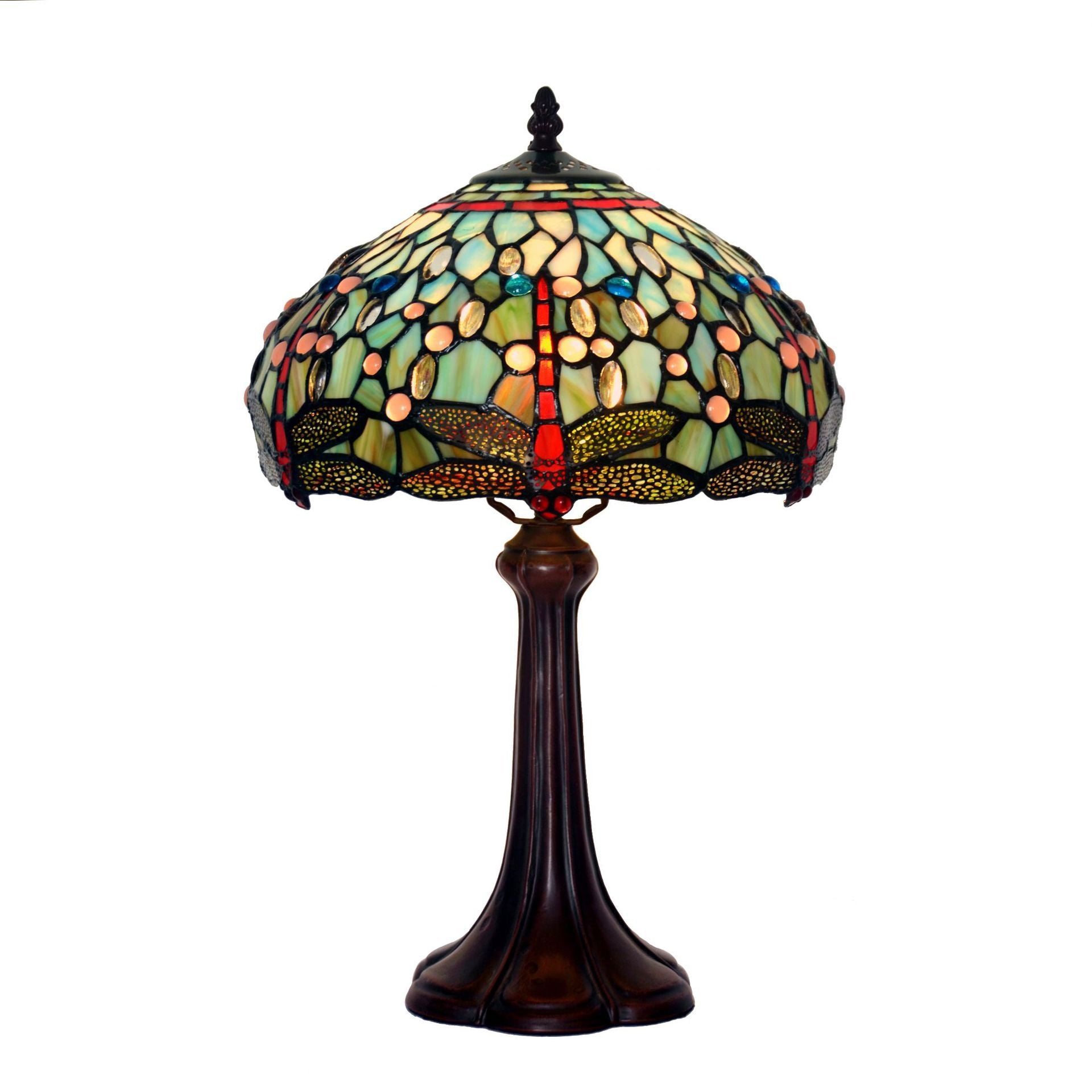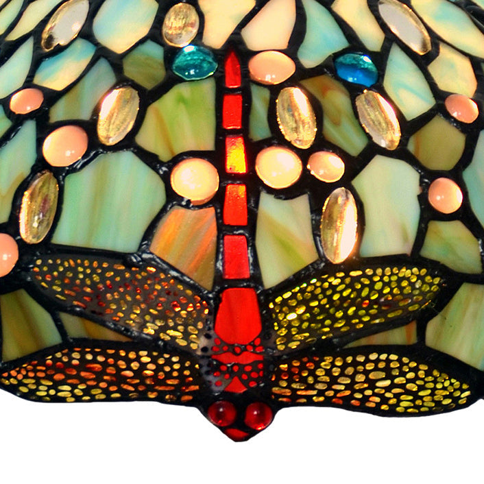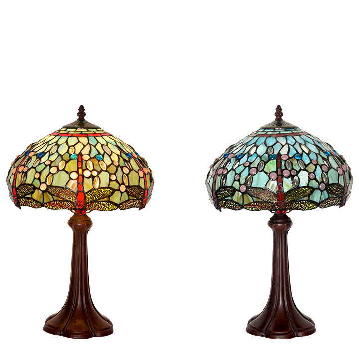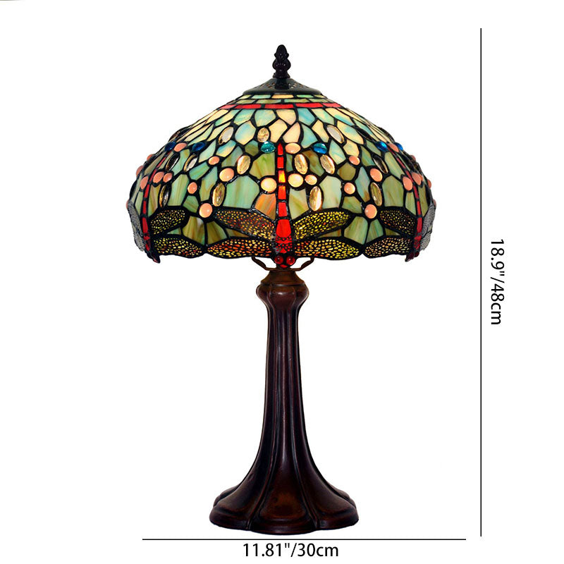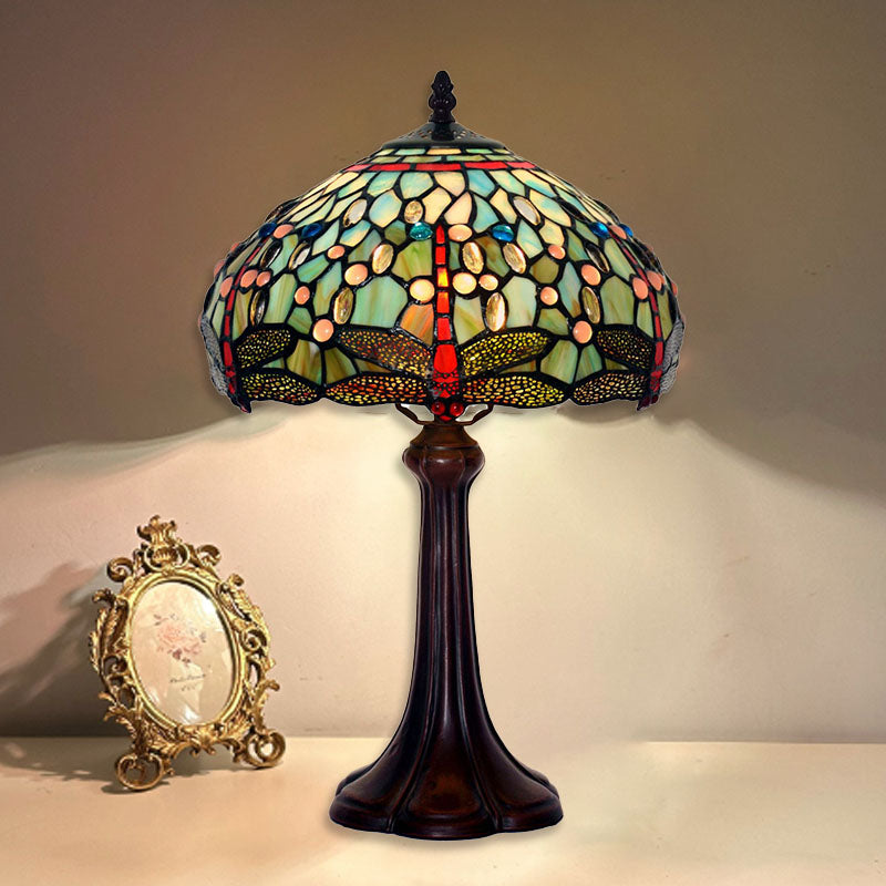Traditional Tiffany Stained Glass Drum-Shaped Dragonfly 1-Light Table Lamp For Study
