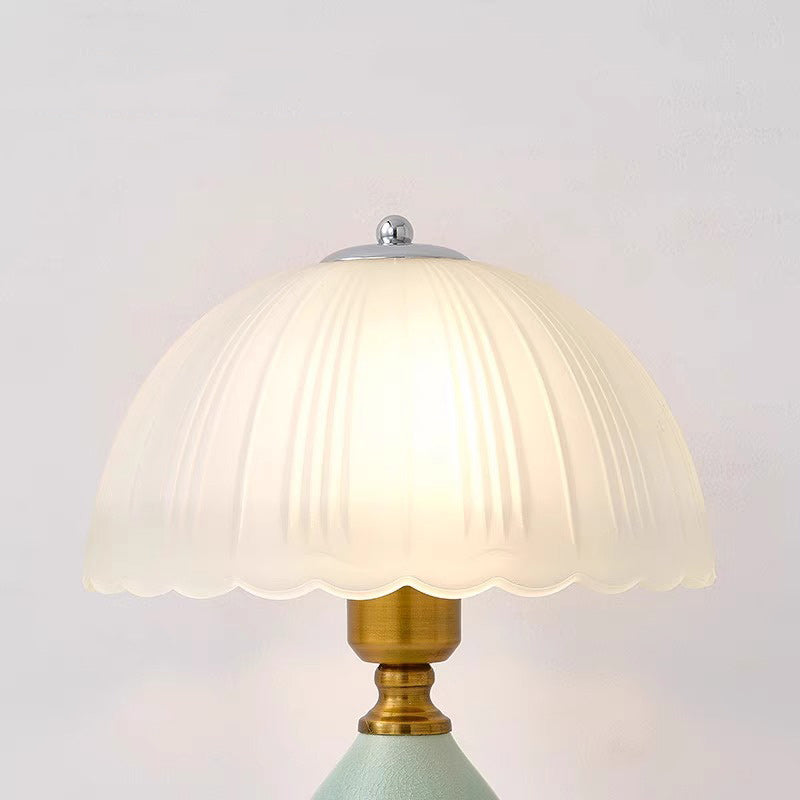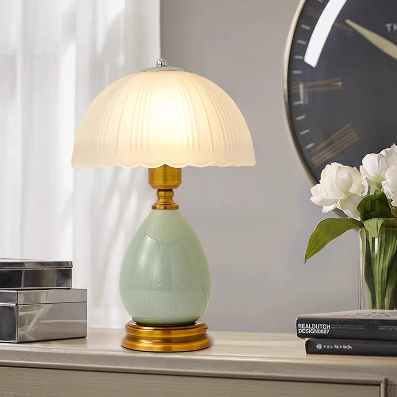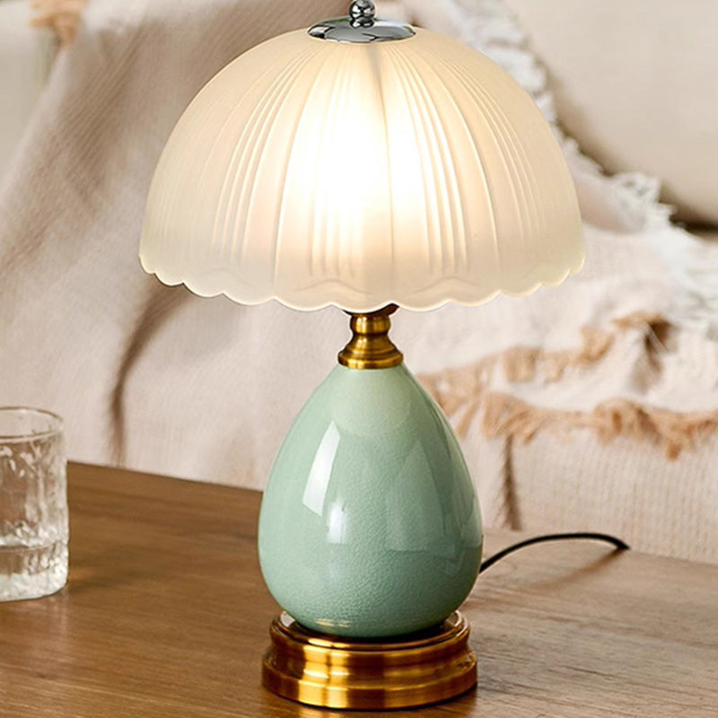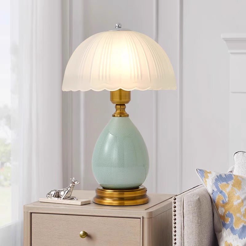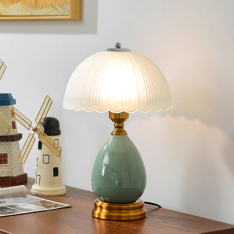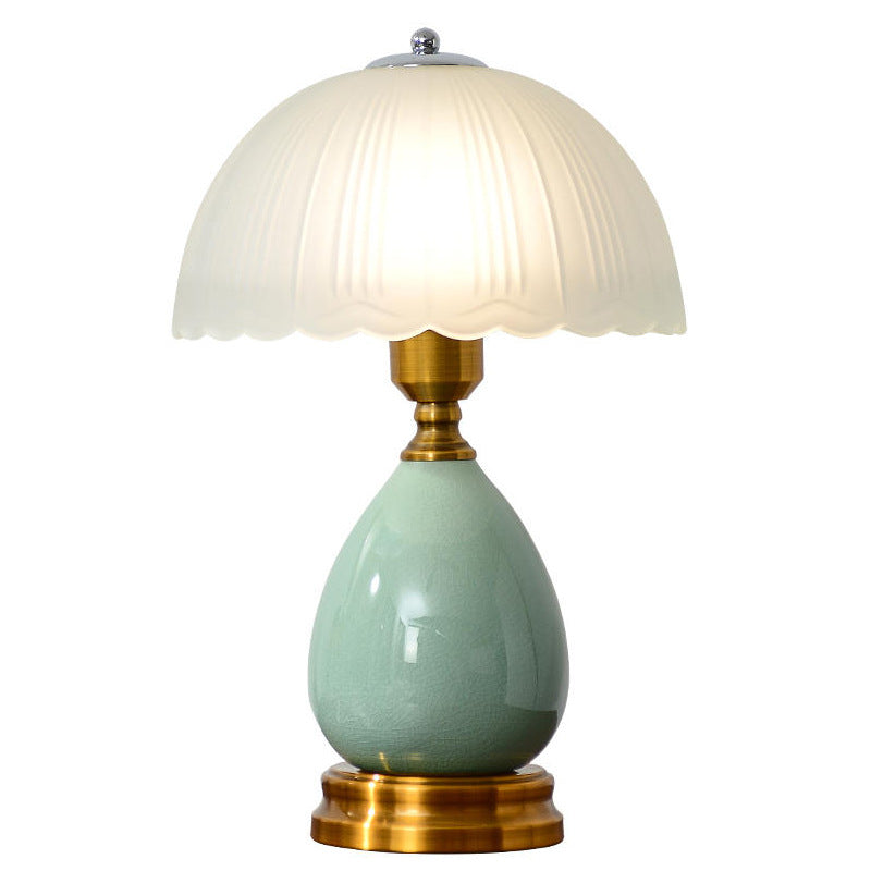 Traditional Vintage Ceramic Glass Metal Teardrop Half-Dome 1-Light Table Lamp For Bedroom