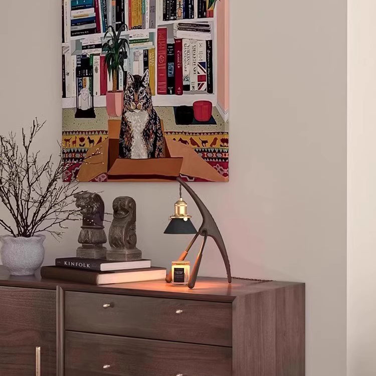 Traditional Vintage Cone Ash Wood Metal 1-Light Melting Wax Table Lamp For Bedroom