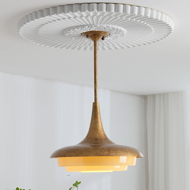伝統的なヴィンテージガラスアイアン1灯ペンダントライト - ダイニングルーム用