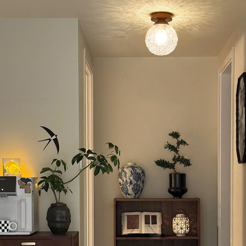 温かみのあるヴィンテージの魅力を体感できる、伝統的なセミフラッシュシーリングライト。球形のガラスシェードとブラウンのメタルアクセントが特徴です。1灯式のデザインは、柔らかで均一な光を放ち、柔らかな光で寝室、リビングルーム、廊下などに最適です。