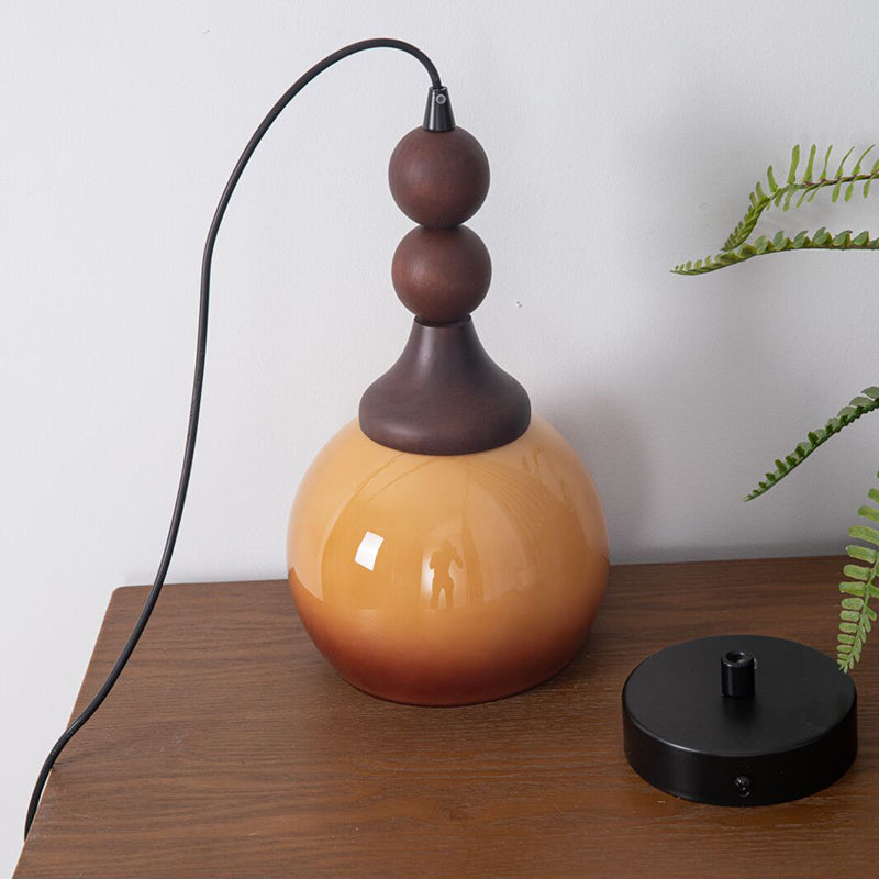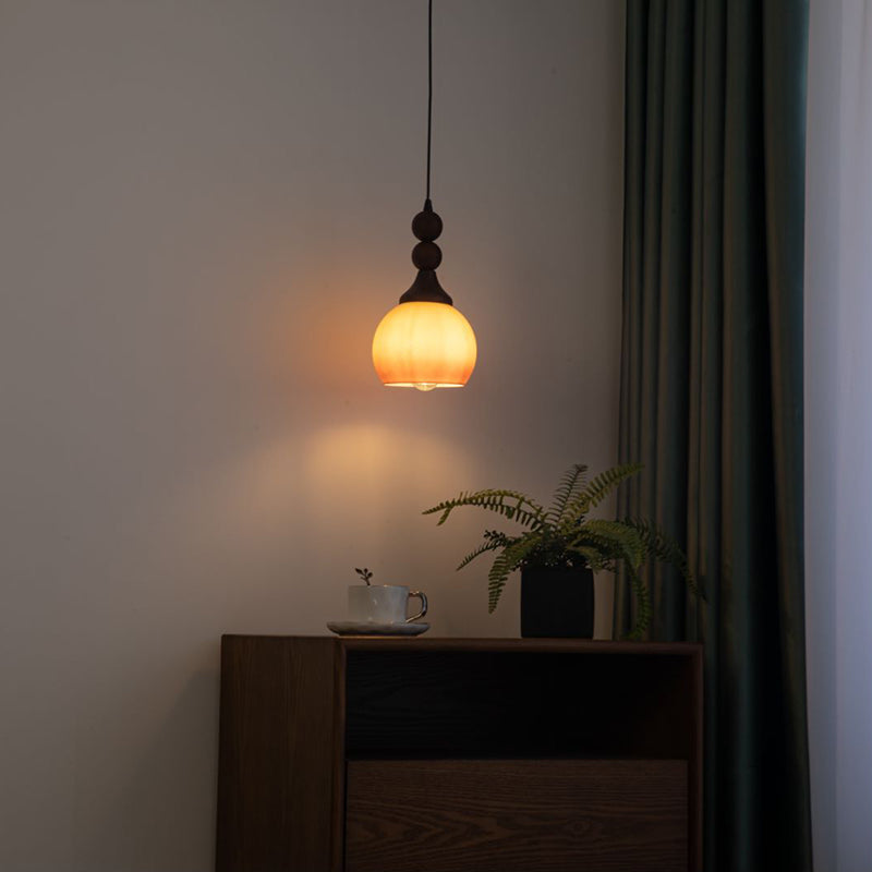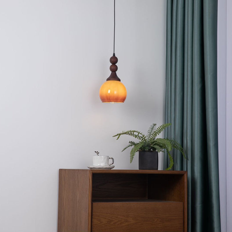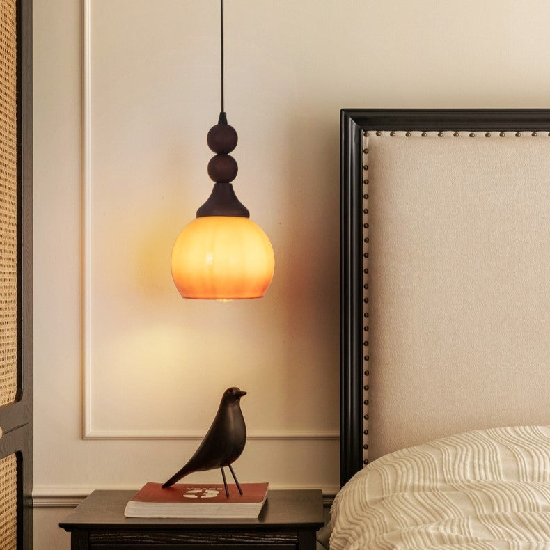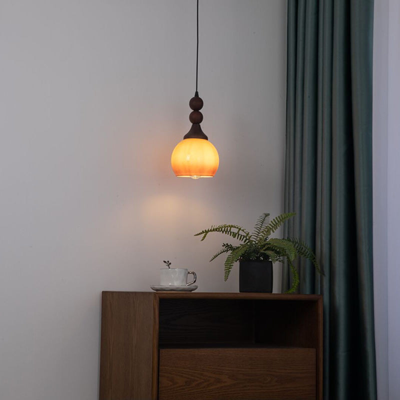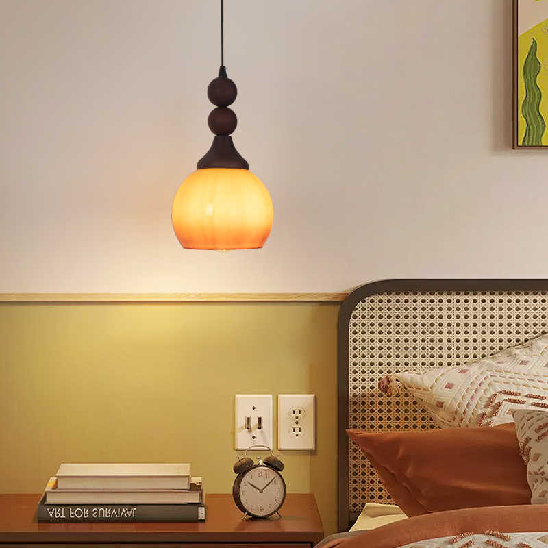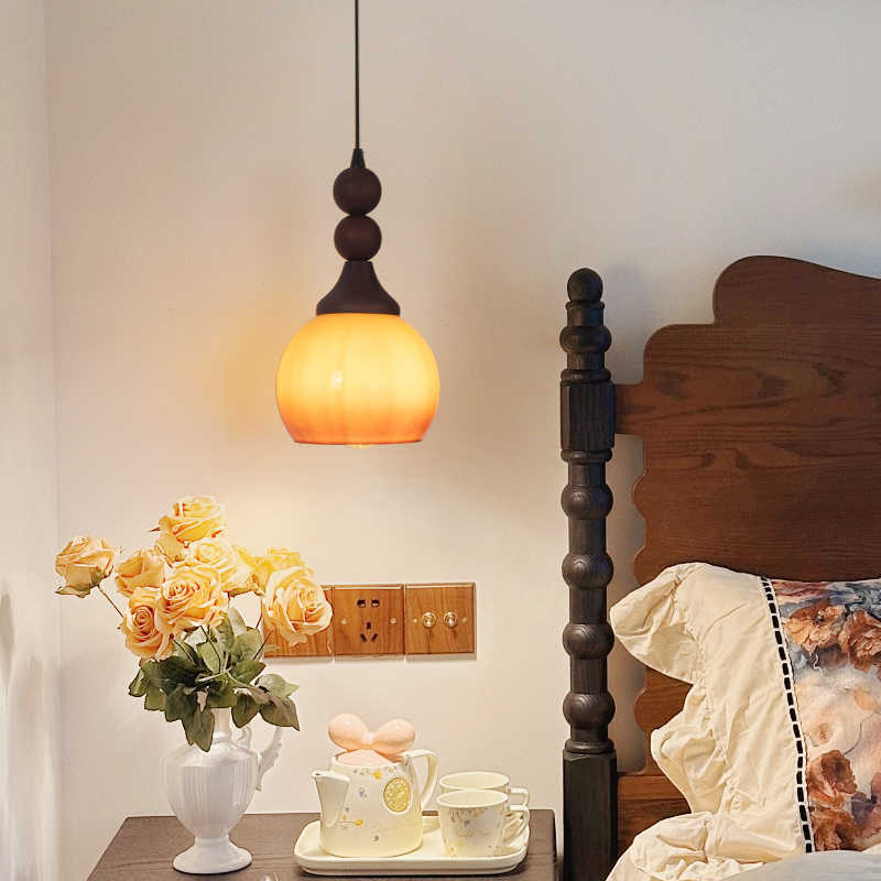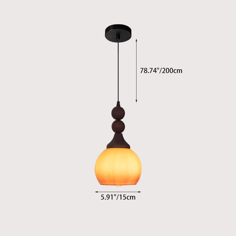 伝統的なヴィンテージガラス球状シェード無垢材1灯ペンダントライトリビングルーム用