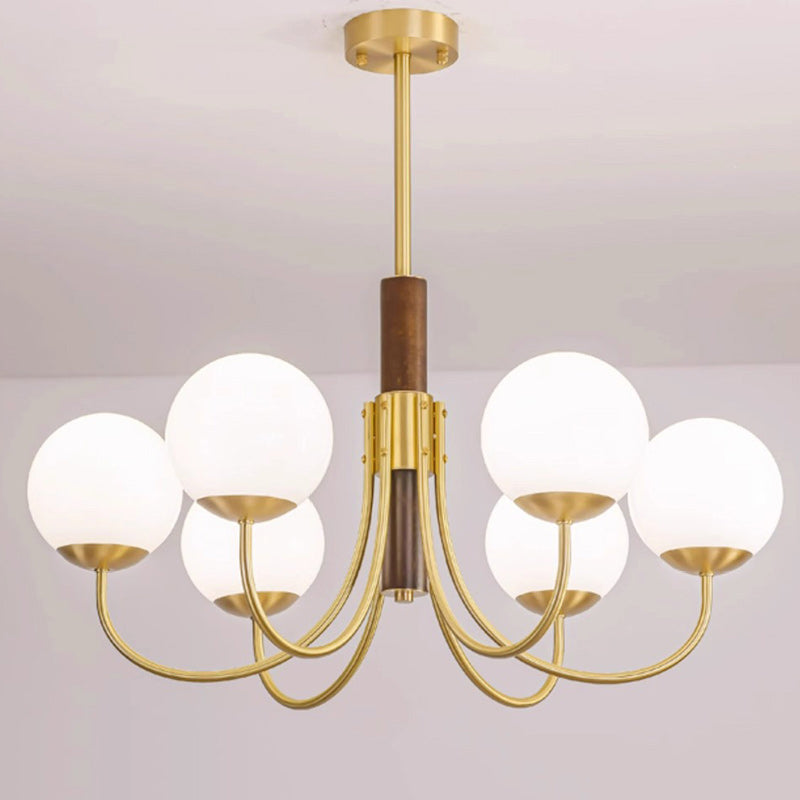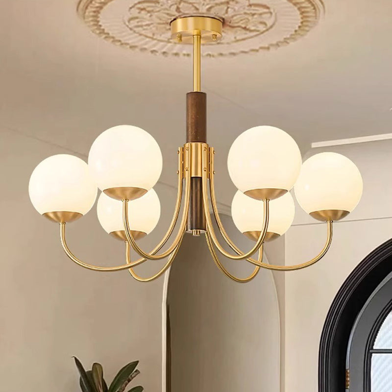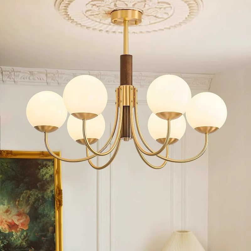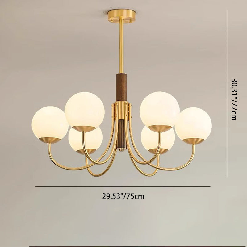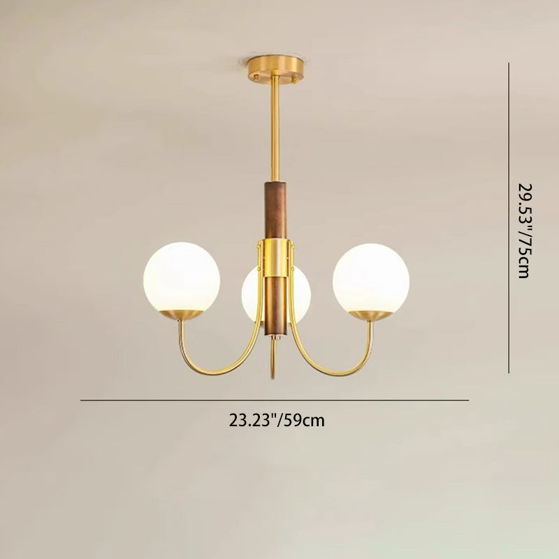 伝統的なヴィンテージグローブ銅木製ガラス3/6ライトシャンデリアリビングルーム用