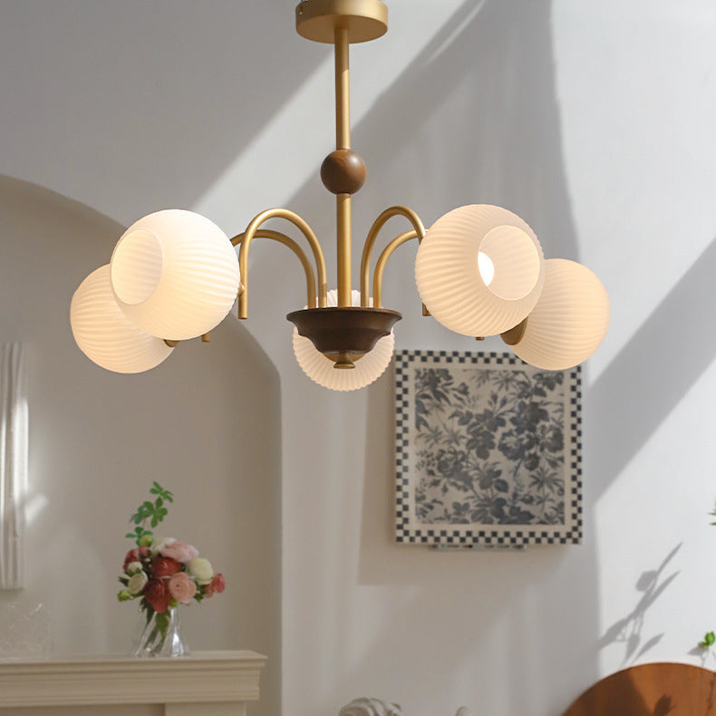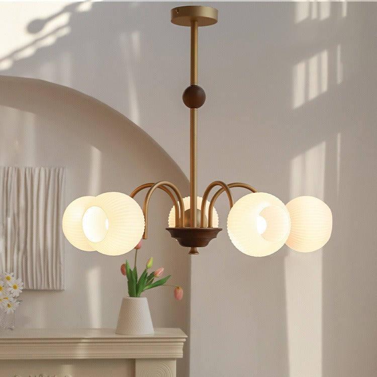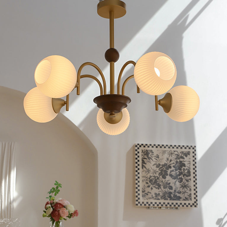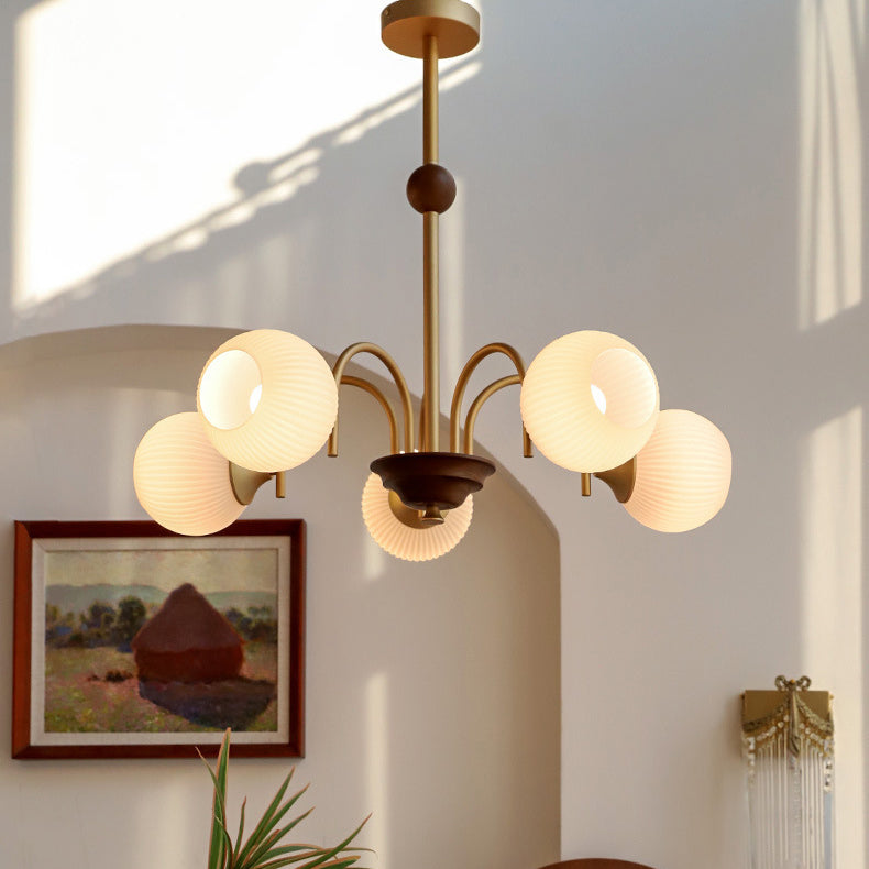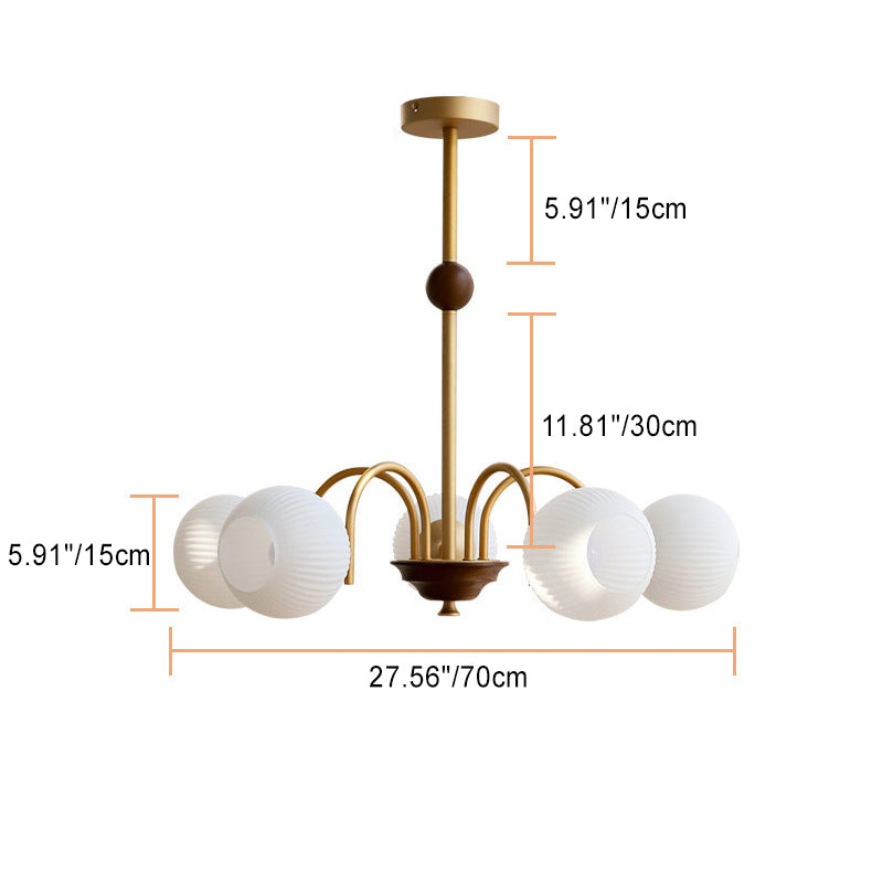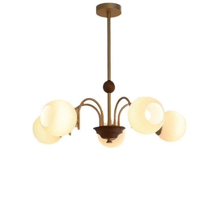 リビングルームに最適な、伝統的なヴィンテージグローブ型アイアンガラス5灯シャンデリア