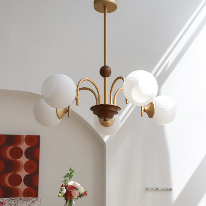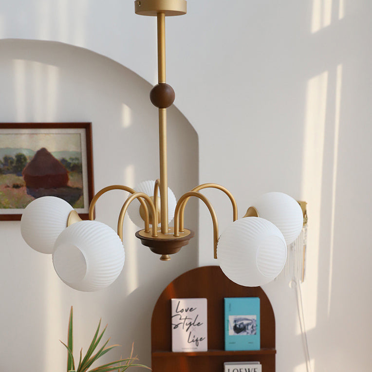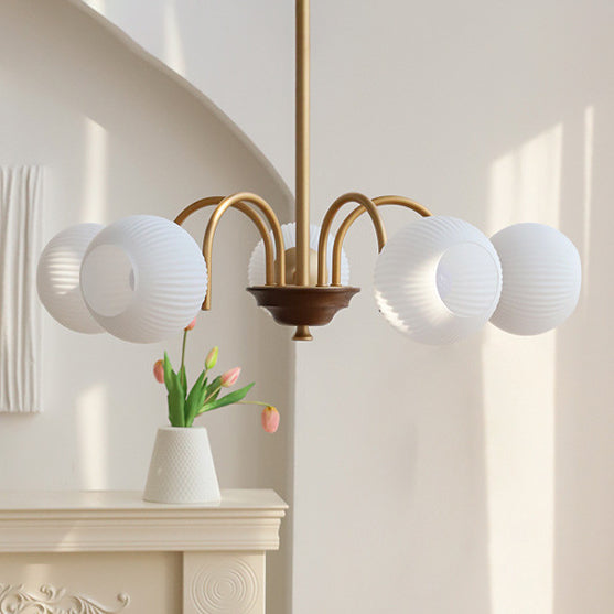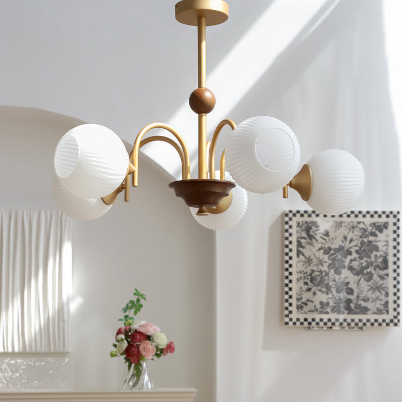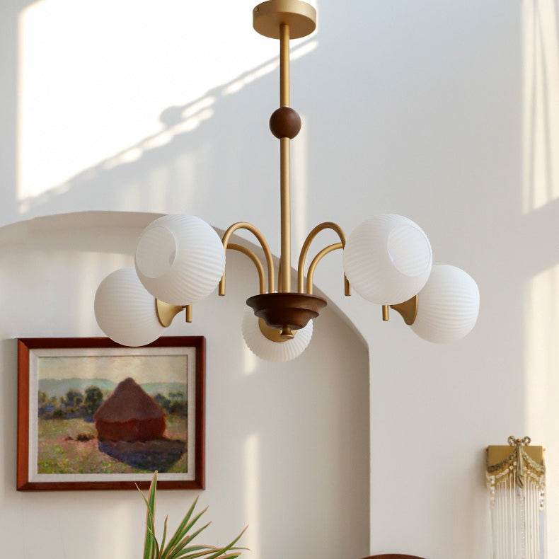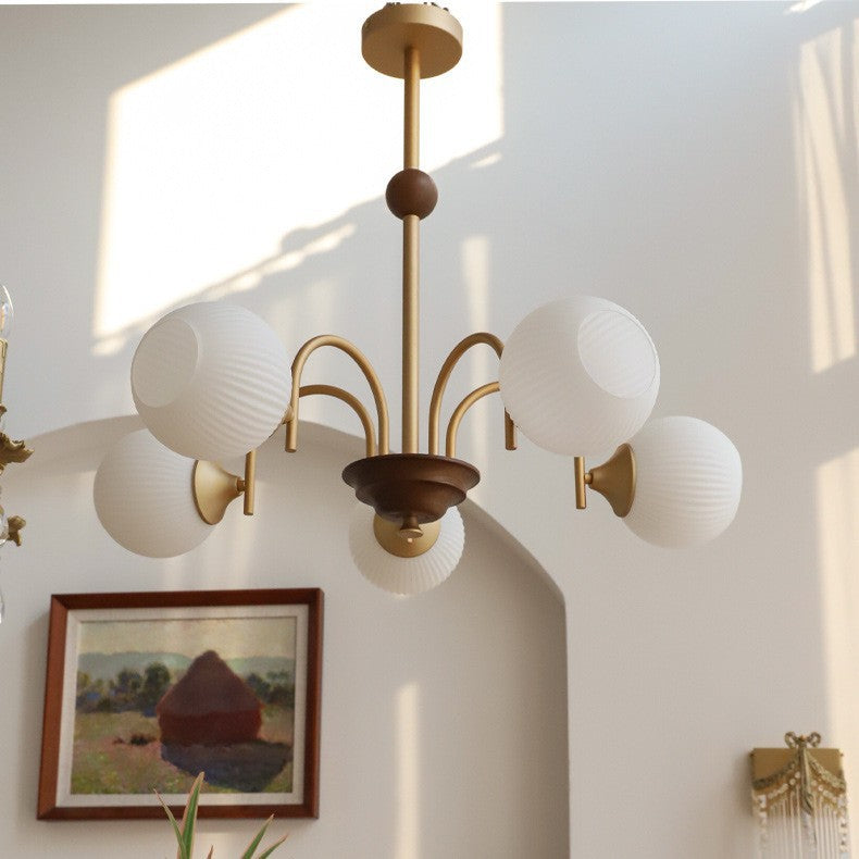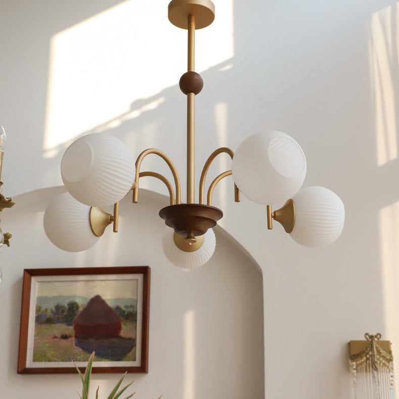 リビングルームに最適な、伝統的なヴィンテージグローブ型アイアンガラス5灯シャンデリア