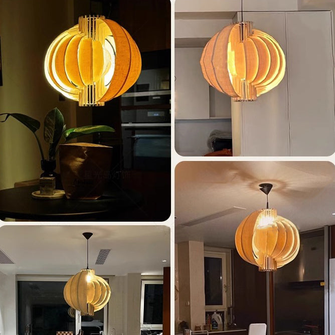 伝統的なヴィンテージグローブムーンシェイプ木製1灯ペンダントライトリビングルーム用