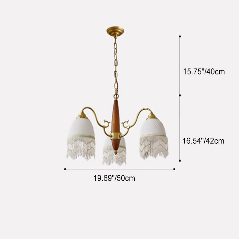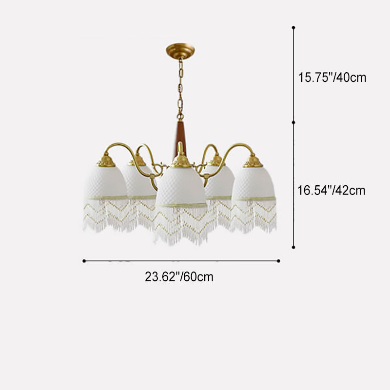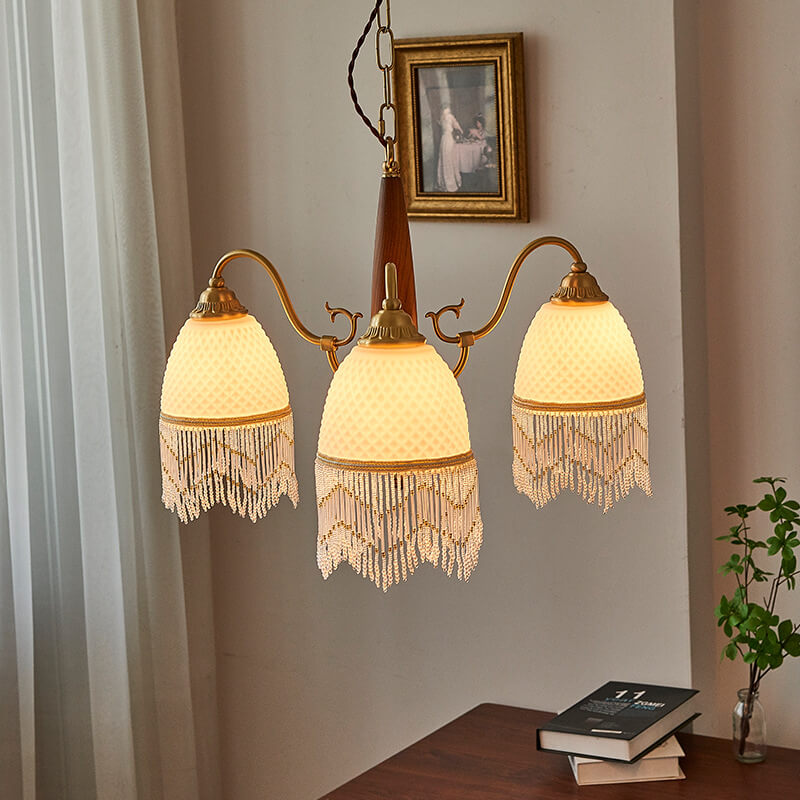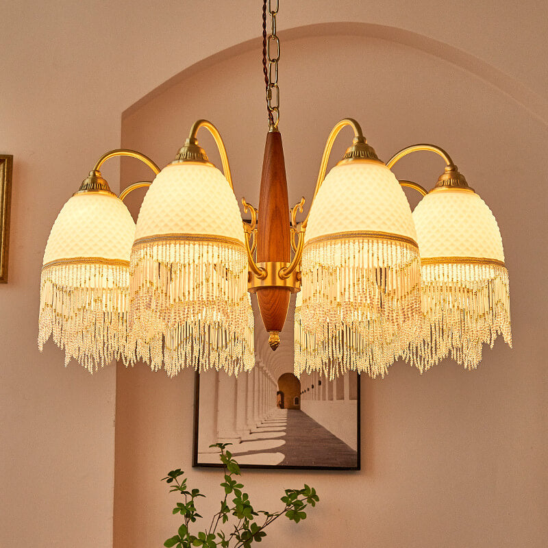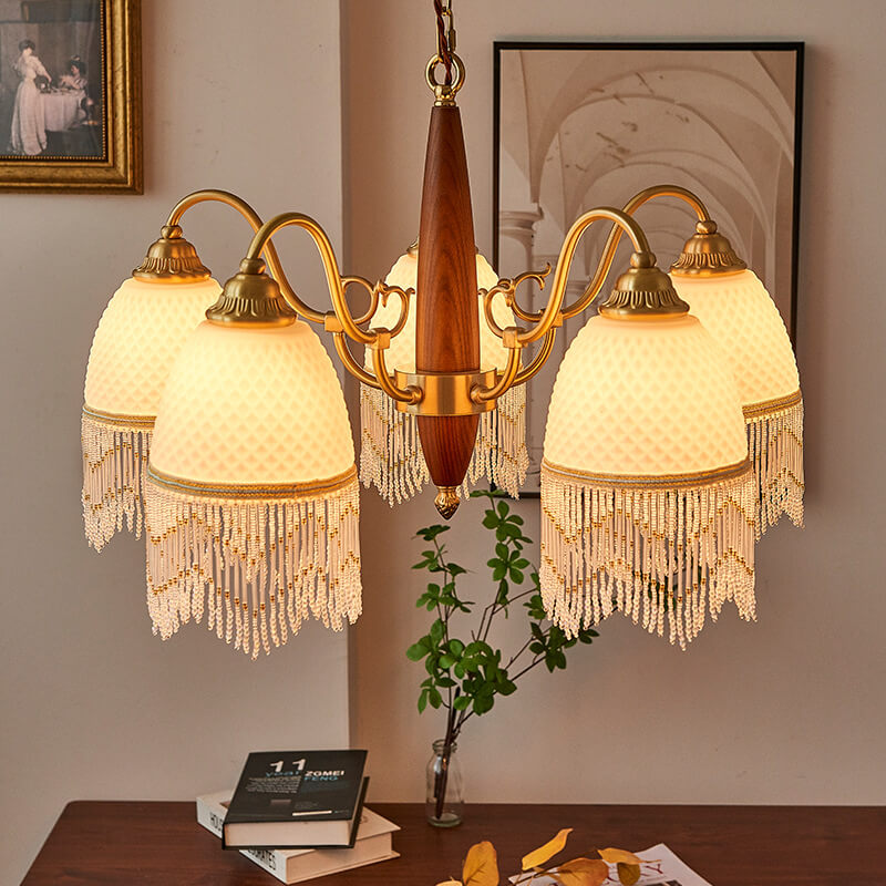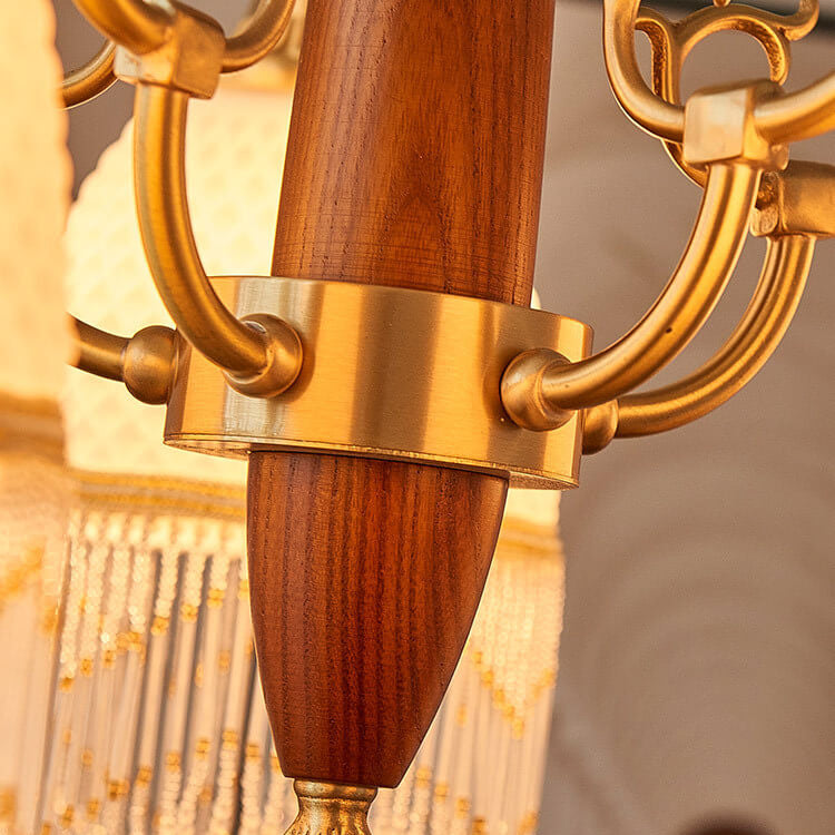 伝統的なヴィンテージグリッドタッセル銅木製ガラス3/5/8ライトシャンデリアリビングルーム用