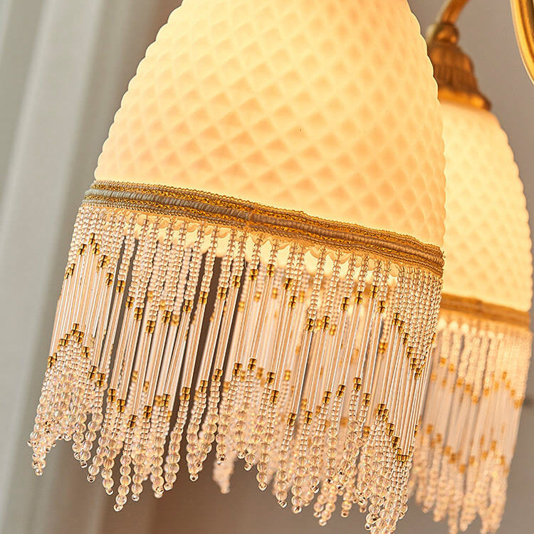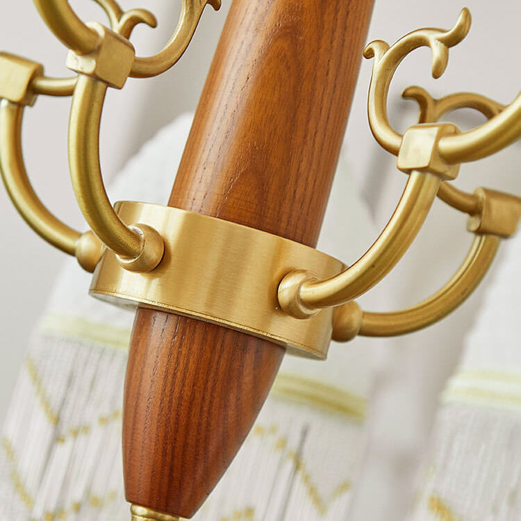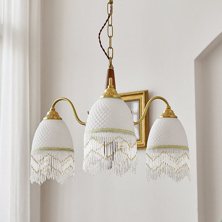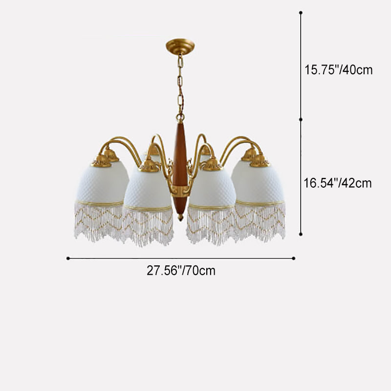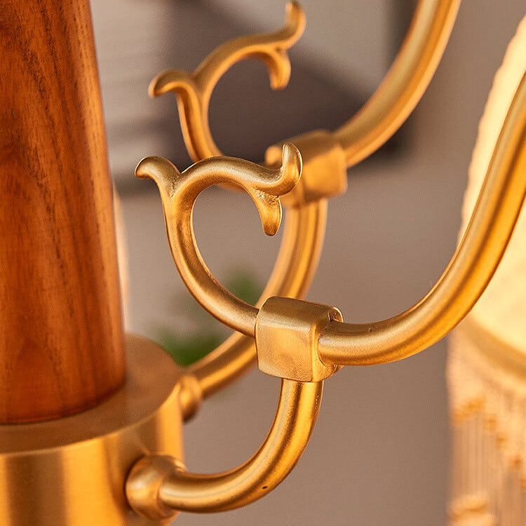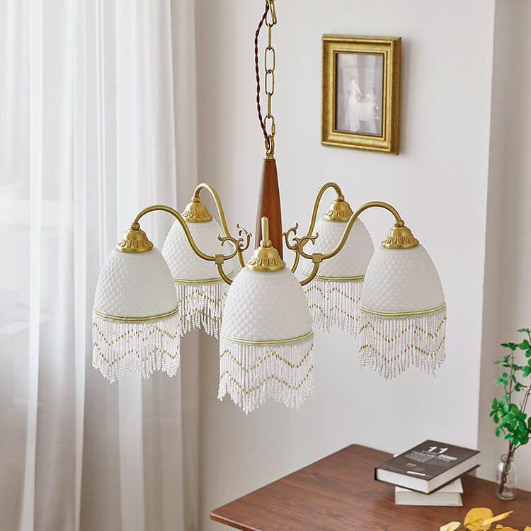 伝統的なヴィンテージグリッドタッセル銅木製ガラス3/5/8ライトシャンデリアリビングルーム用