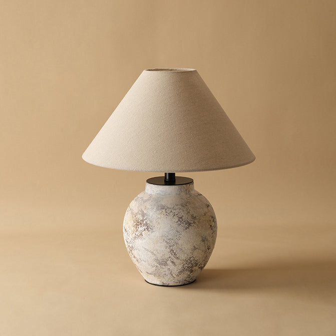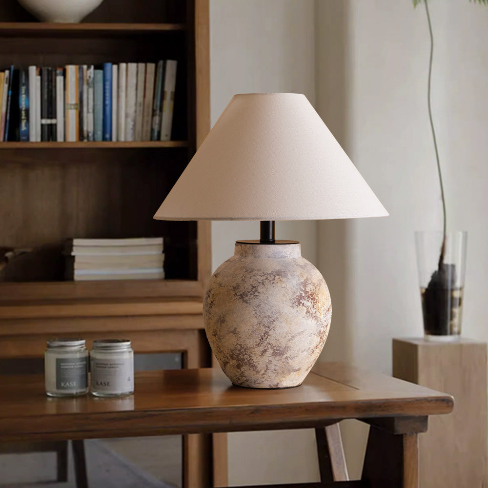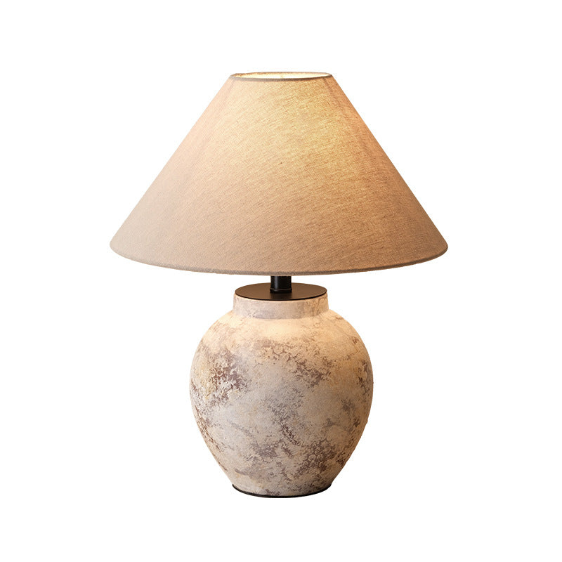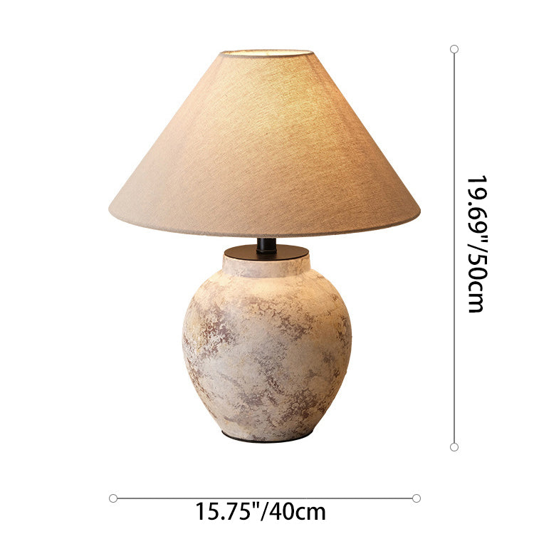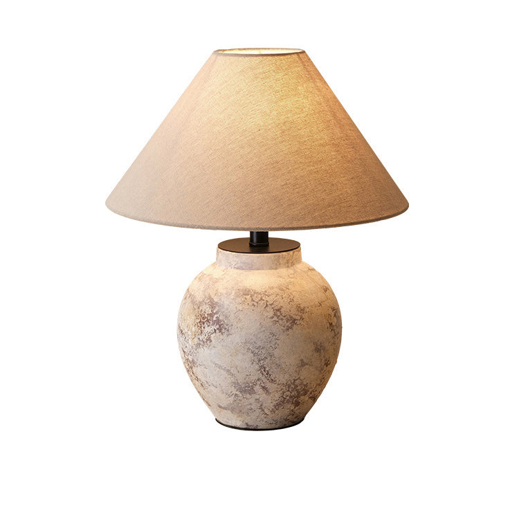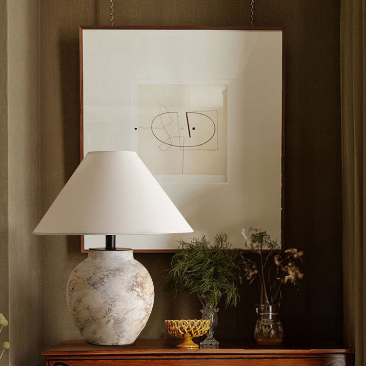 Traditional Vintage Handmade Ceramic Fabric Conic Pot 1-Light Table Lamp For Bedside