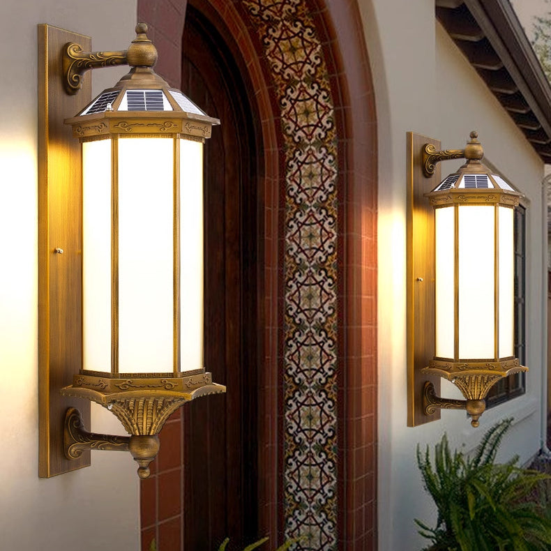 伝統的なヴィンテージ六角形長方形ガラス鉄アルミ1ライト壁取り付け用燭台ランプガーデン用