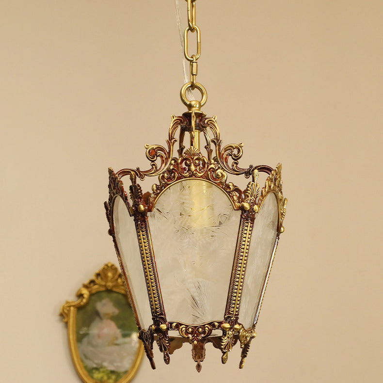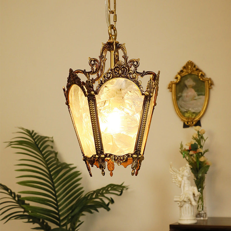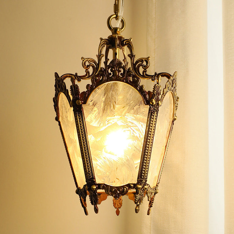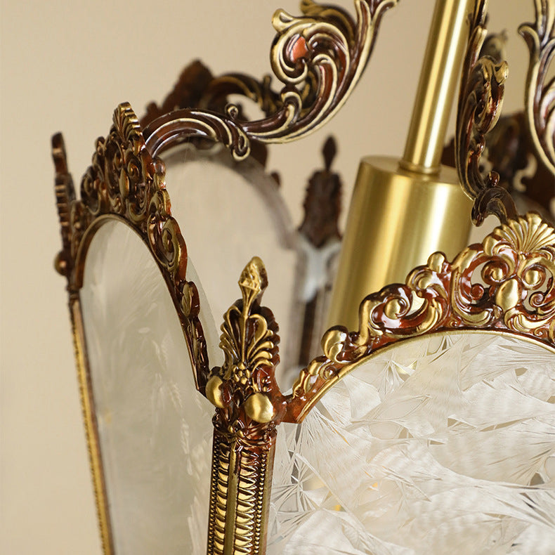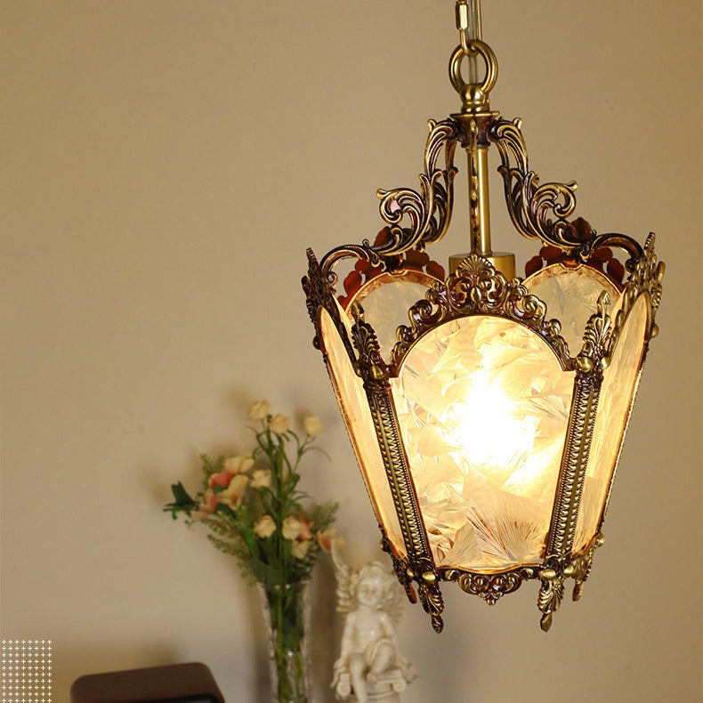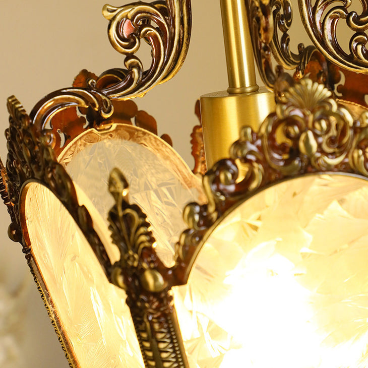 伝統的なヴィンテージアイスコートカーブガラス銅1灯ペンダントライトリビングルーム用
