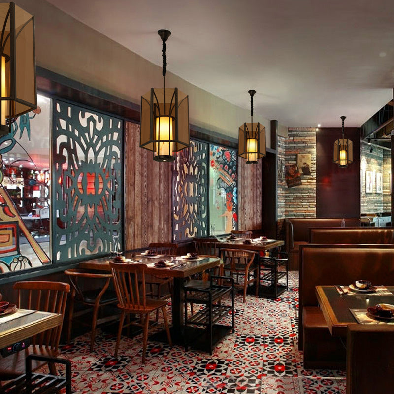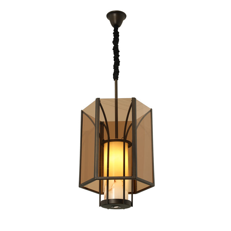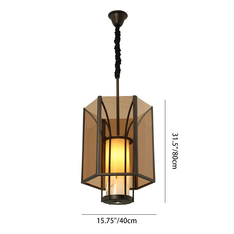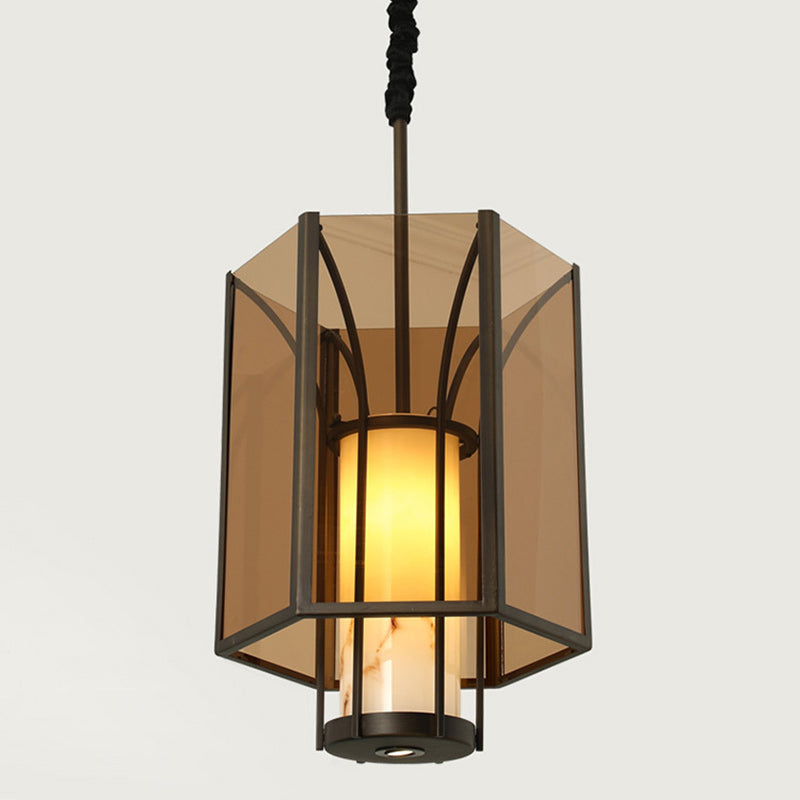 伝統的なヴィンテージ風模造大理石六角形ガラスシェード1灯ペンダントライト(リビングルーム用)