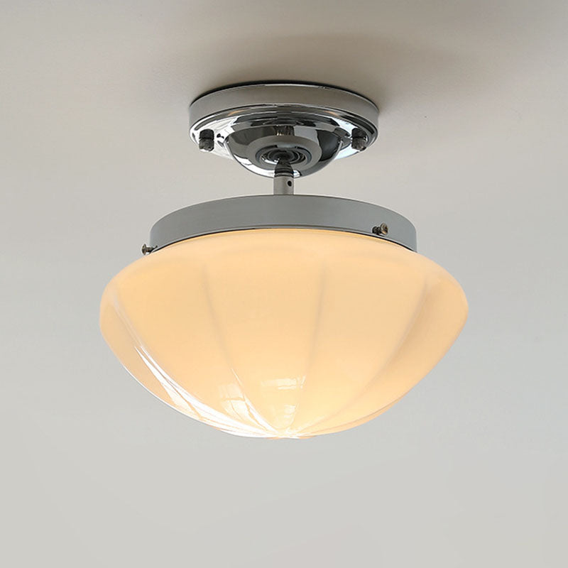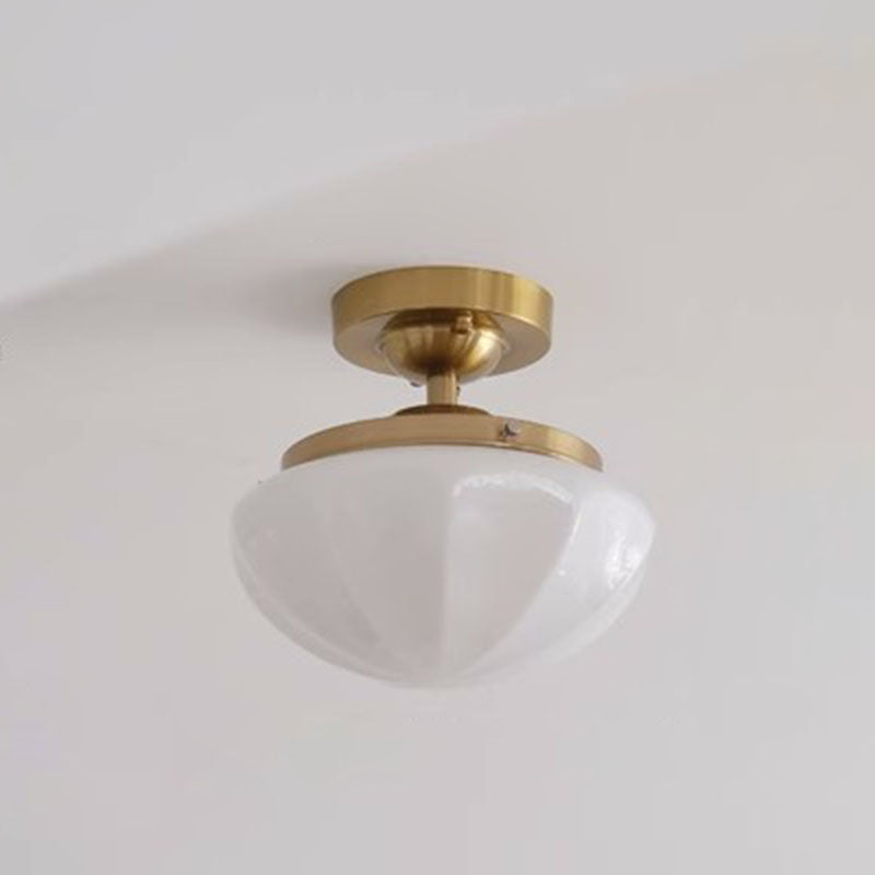 伝統的なヴィンテージアイアンガラスクリームラウンド1ライトセミフラッシュマウント廊下用シーリングライト