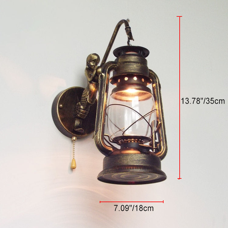 伝統的なヴィンテージの鉄製ガラスシリンダー灯油ランタンマーメイド1灯壁取り付け用燭台ランプ(廊下用)