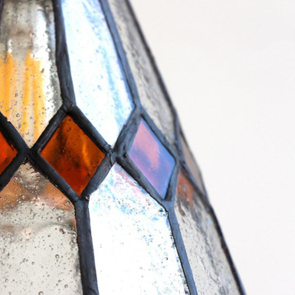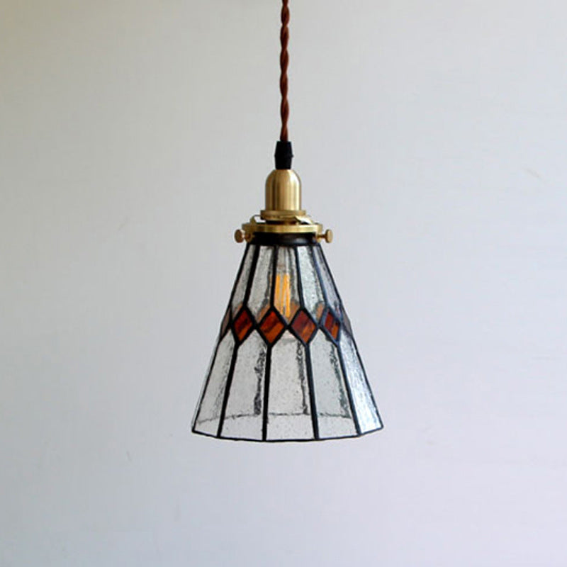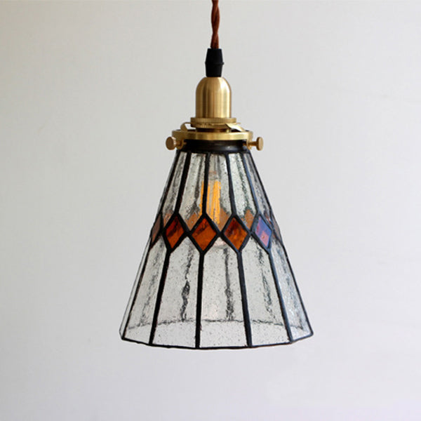 伝統的なヴィンテージの鉄とガラスのリブ付きコーン1灯ペンダントライト。寝室やリビングルームに最適です。