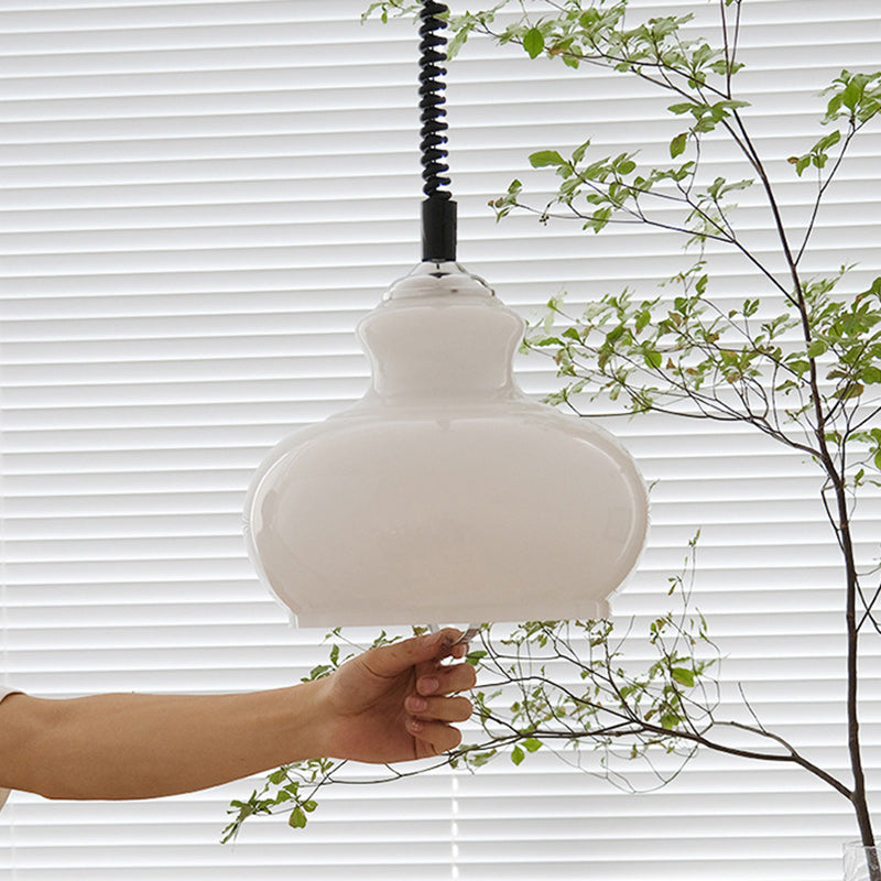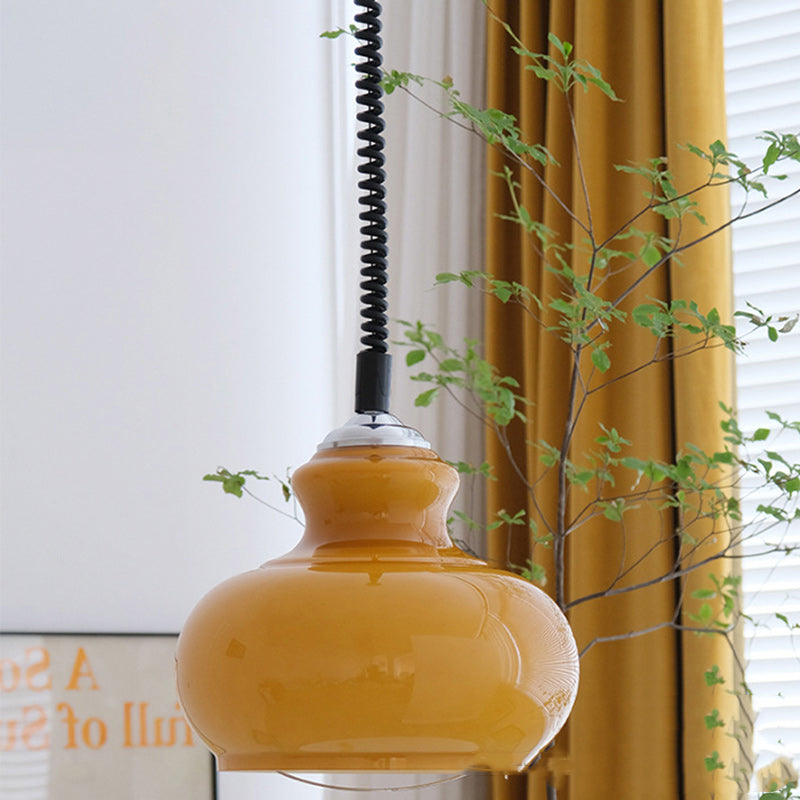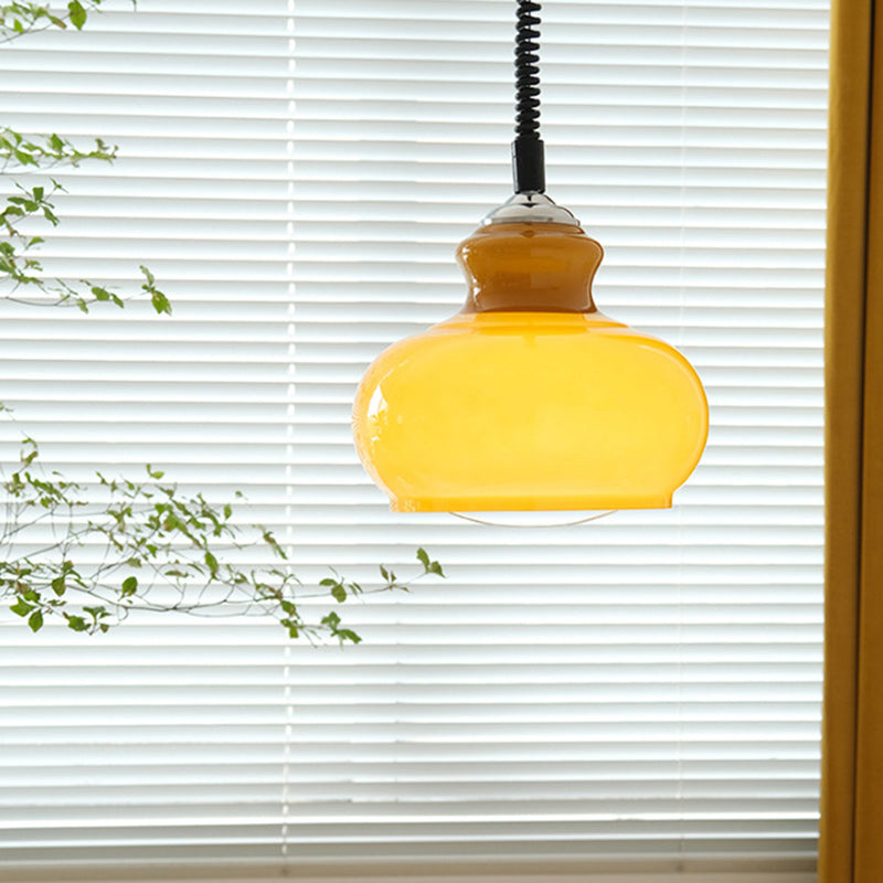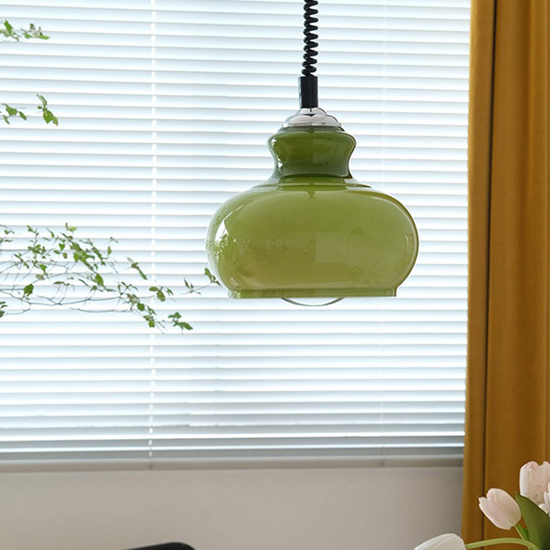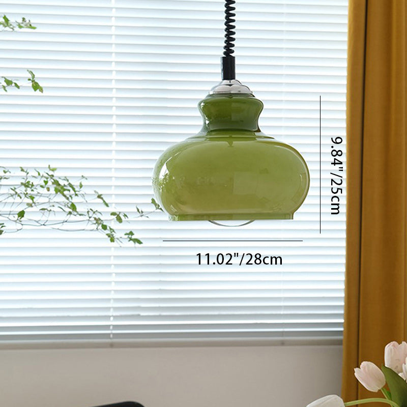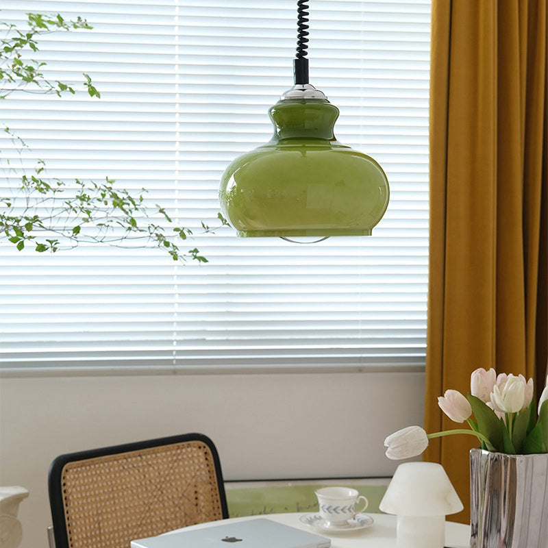 伝統的なヴィンテージの鉄製ガラス製丸型ひょうたん型1灯ペンダントライト(ダイニングルーム用)