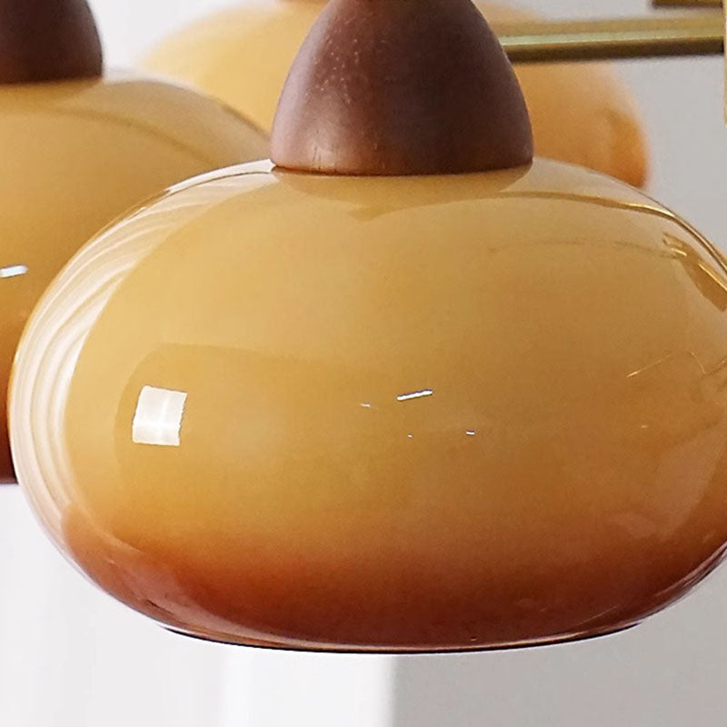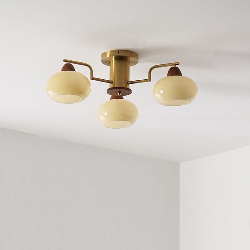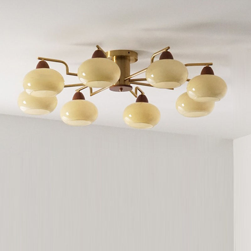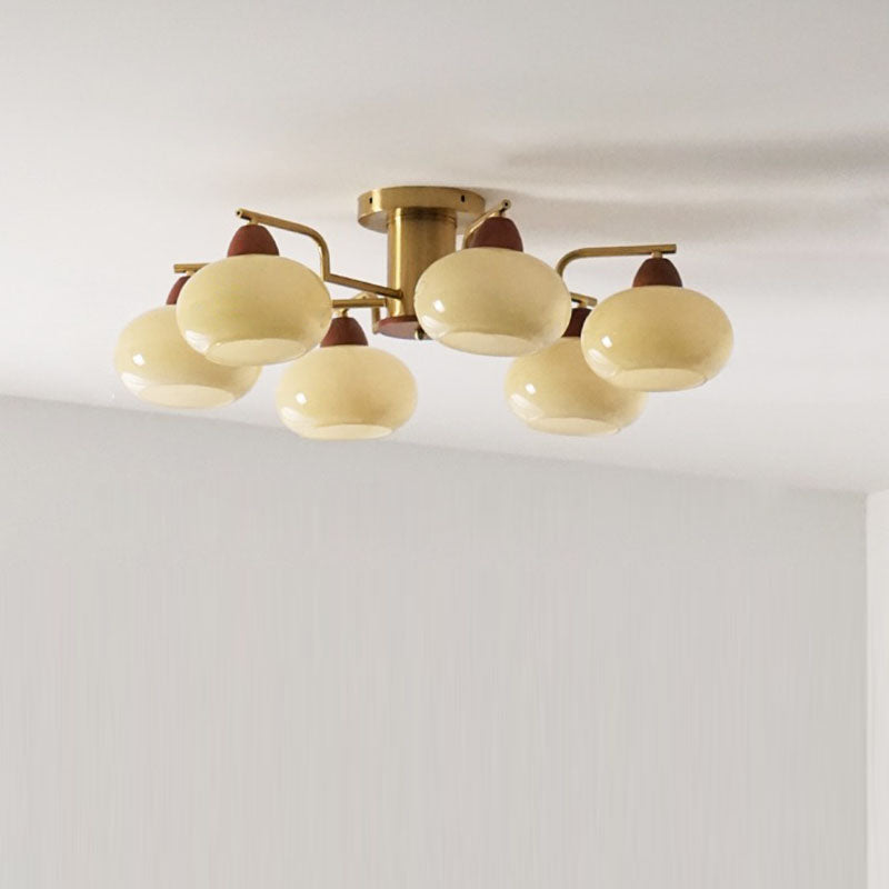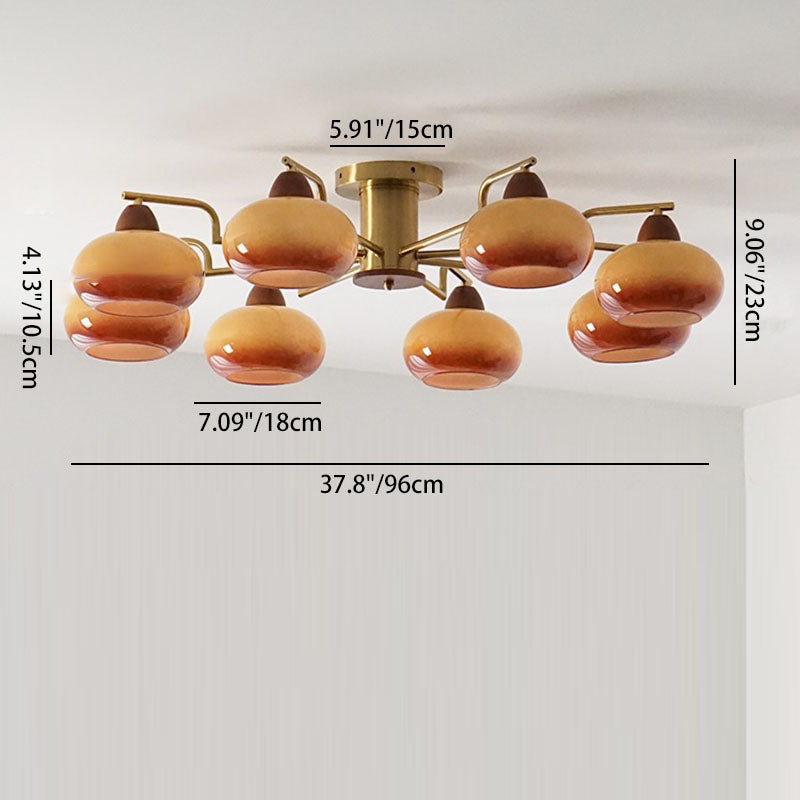 伝統的なヴィンテージアイアンガラスウッドパーシモンラウンド3/6/8ライトセミフラッシュマウントシーリングライトリビングルーム用
