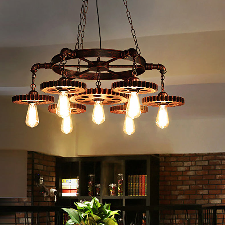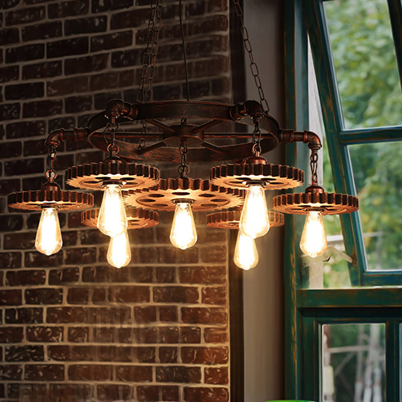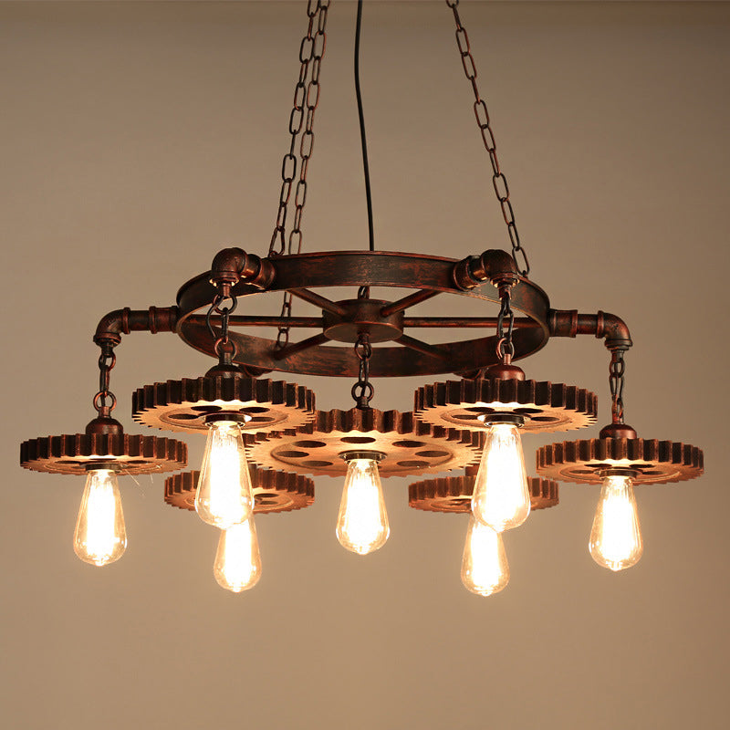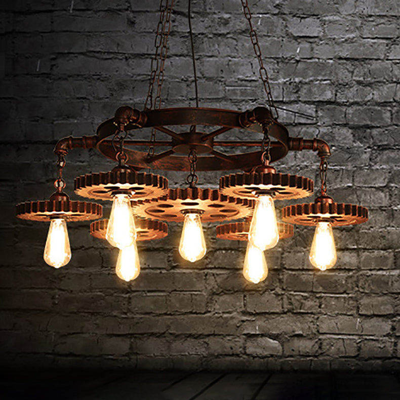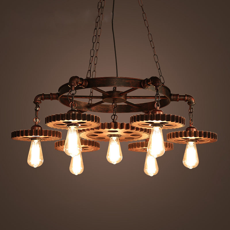 伝統的なヴィンテージアイアンラウンドフレームギアデザイン7ライトシャンデリア(リビングルーム用)