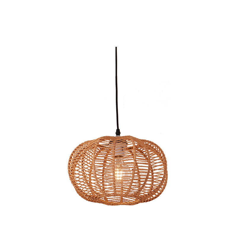 伝統的なヴィンテージランタン、丸型、中が空洞のラタン、アイアン、1灯ペンダントライト、リビングルーム用