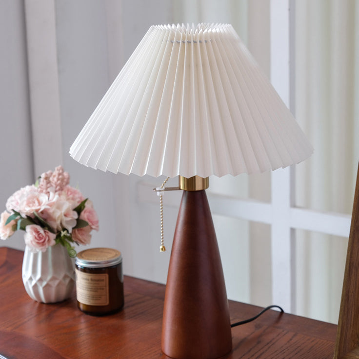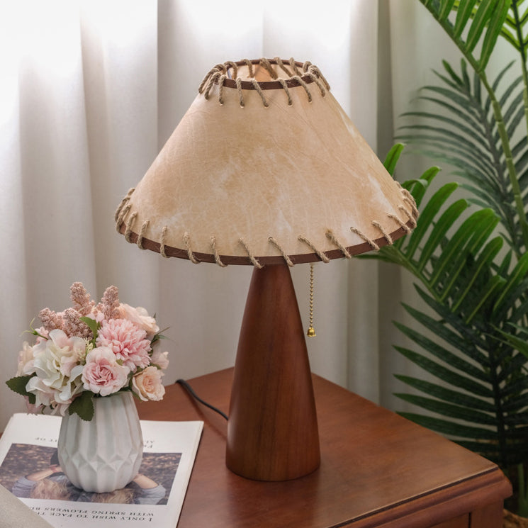 Traditional Vintage Mushroom Linen Imitation Sheepskin Wood 1-Light Table Lamp For Living Room