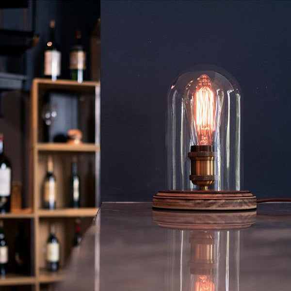 Traditional Vintage Oval Cylinder Round Wood Glass 1-Light Table Lamp For Bedroom
