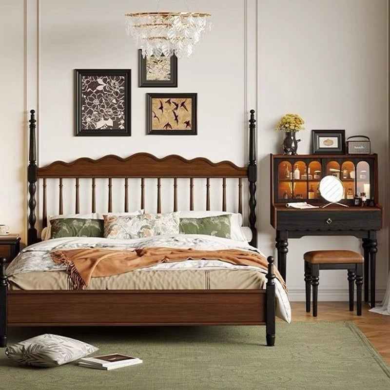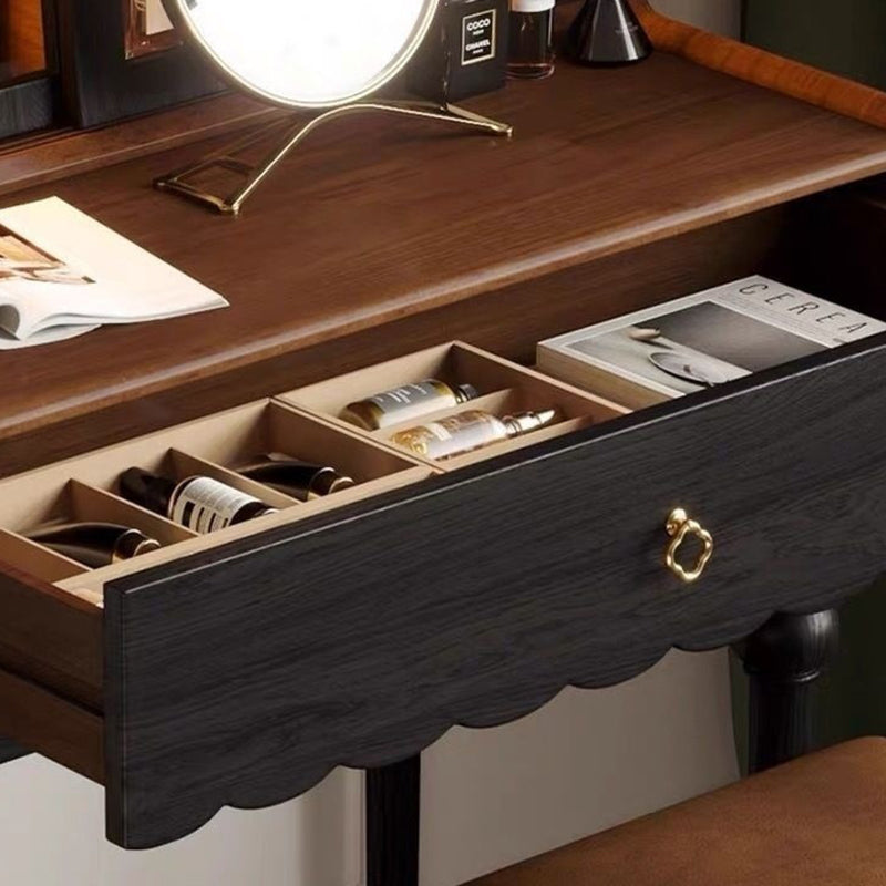 Traditional Vintage Rectangular Wood Glass Makeup Vanity 1-Drawer For Bedroom