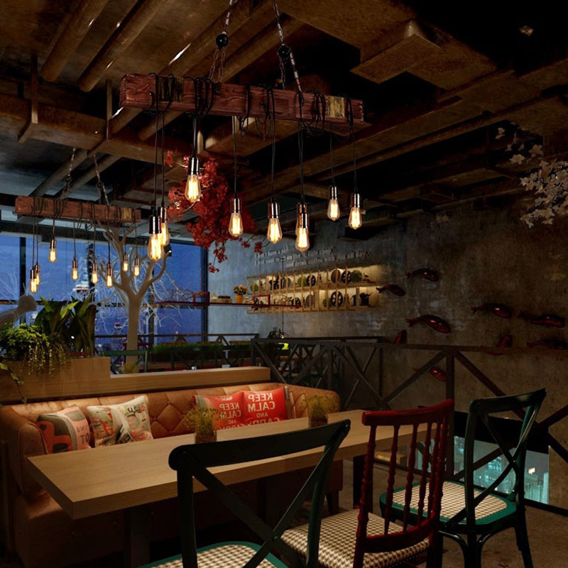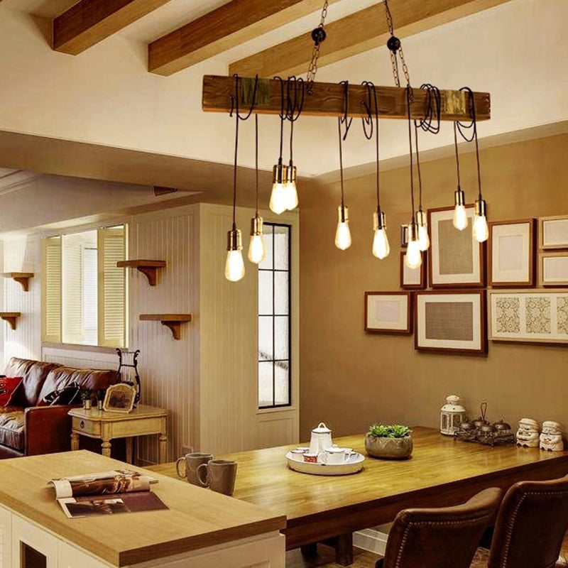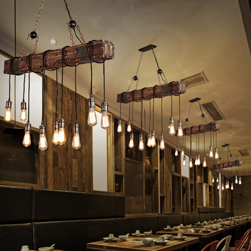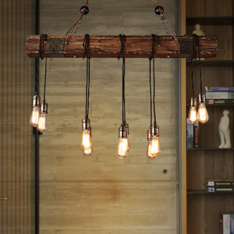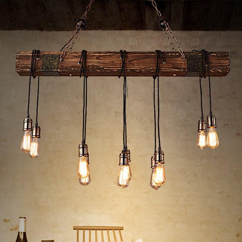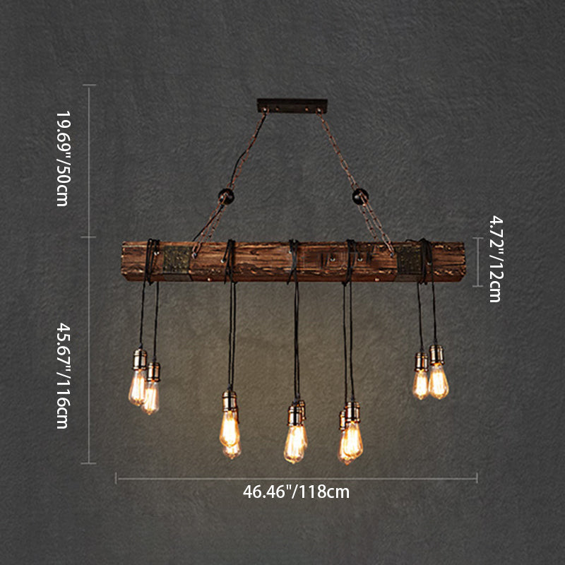 伝統的なヴィンテージ長方形木製アイアン10灯アイランドライトシャンデリアライトリビングルーム用