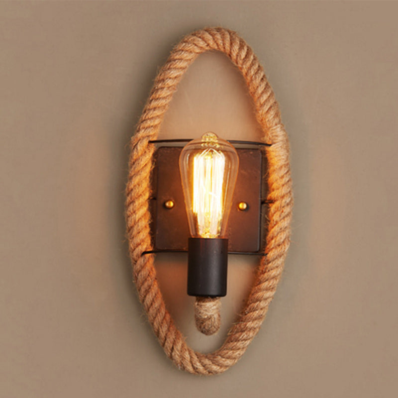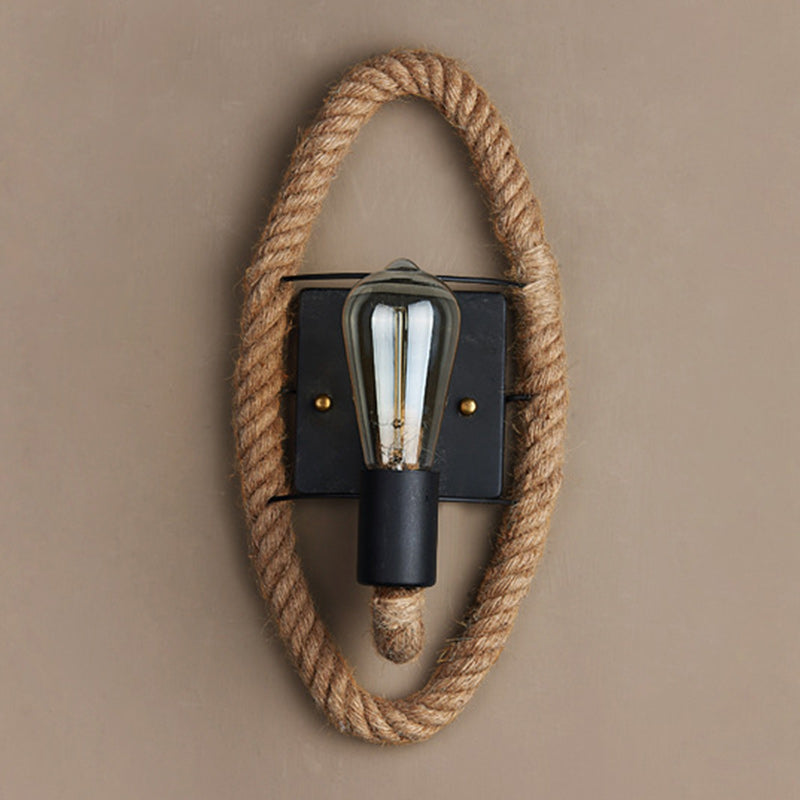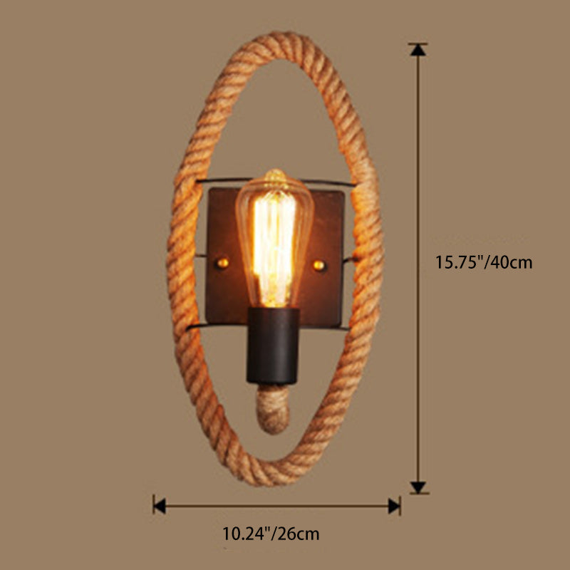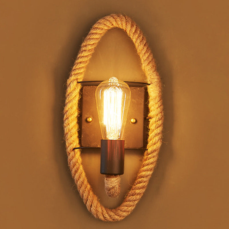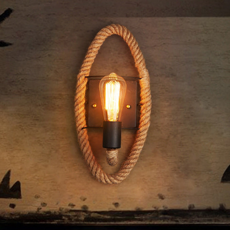 伝統的なヴィンテージラウンドオーバルハードウェアヘンプロープ1ライトウォールスコンスランプリビングルーム用