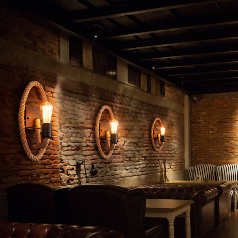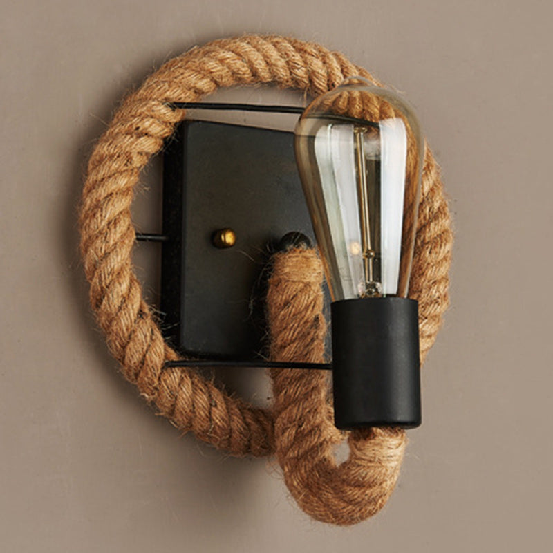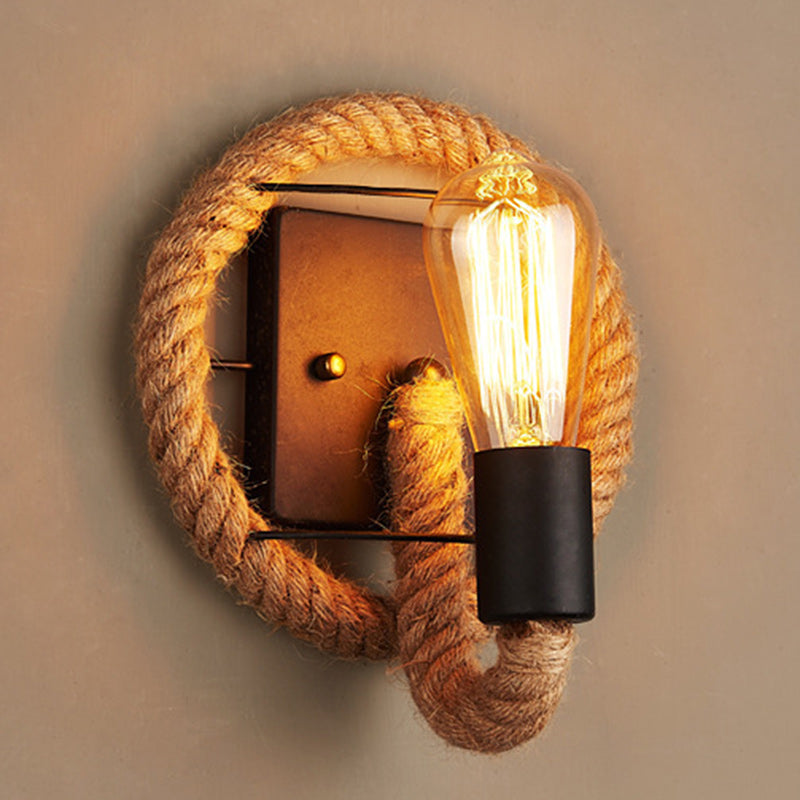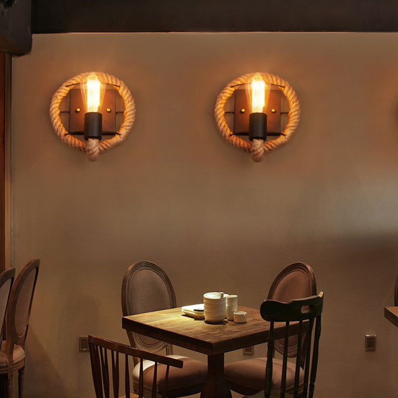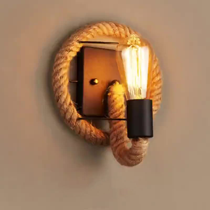 伝統的なヴィンテージラウンドオーバルハードウェアヘンプロープ1ライトウォールスコンスランプリビングルーム用