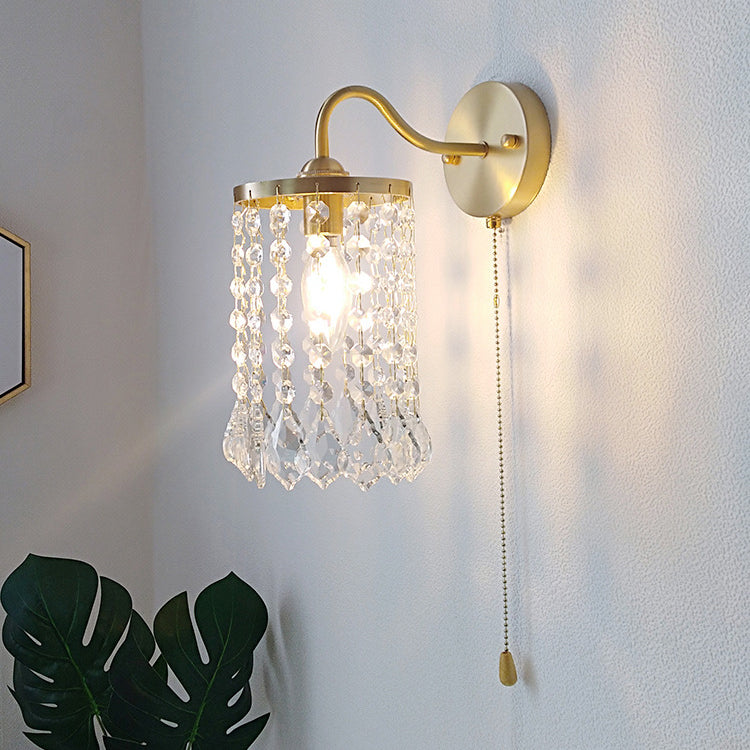 伝統的なヴィンテージラウンドシェルクリスタルアイアンフレーム1ライトウォールスコンスランプリビングルーム用