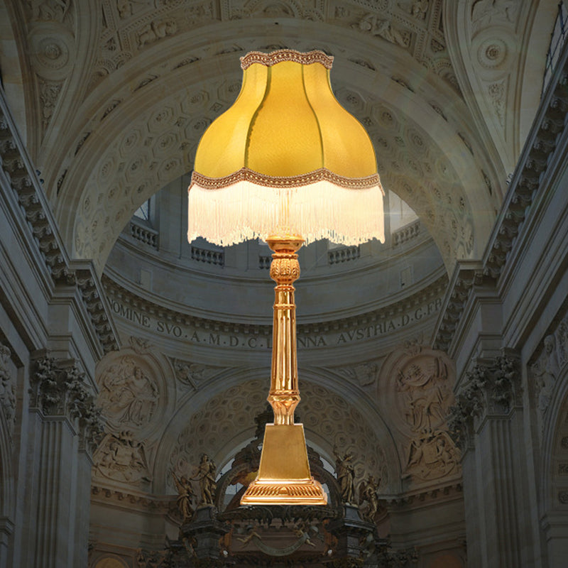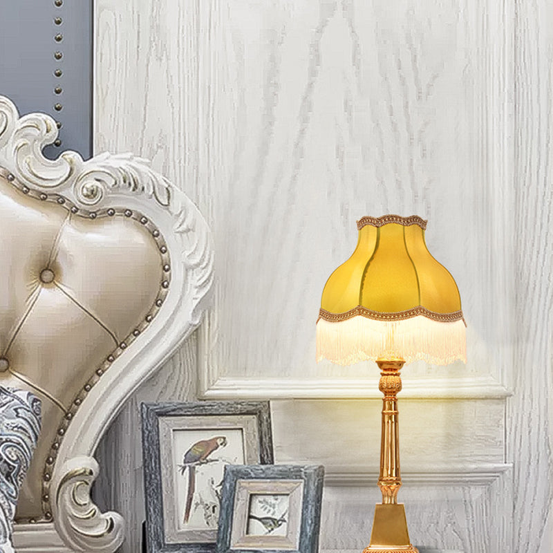 Traditional Vintage Tassel Round Square Fabric Brass 1-Light Table Lamp For Living Room