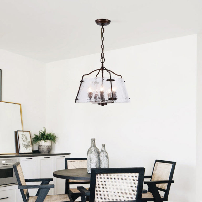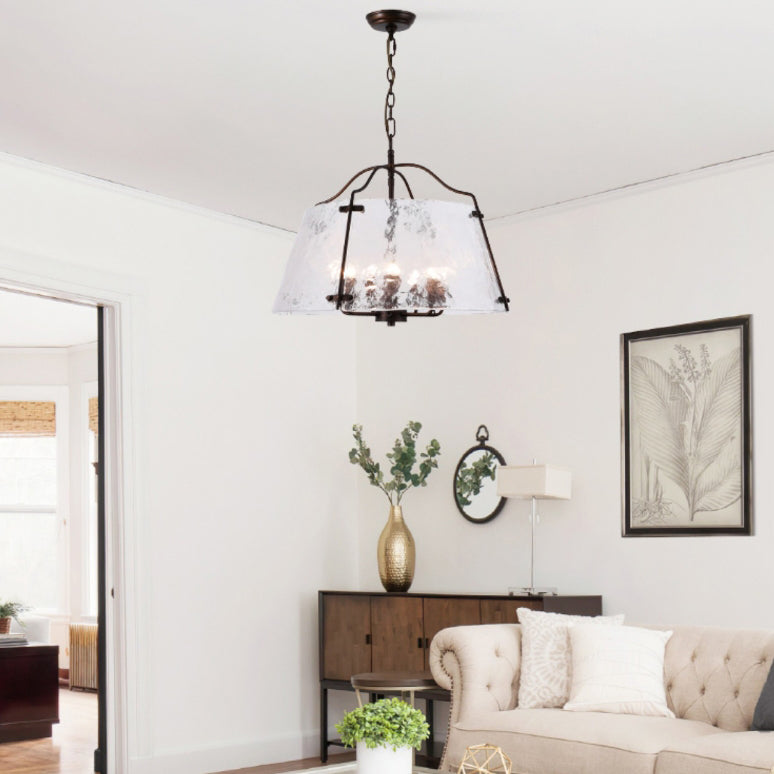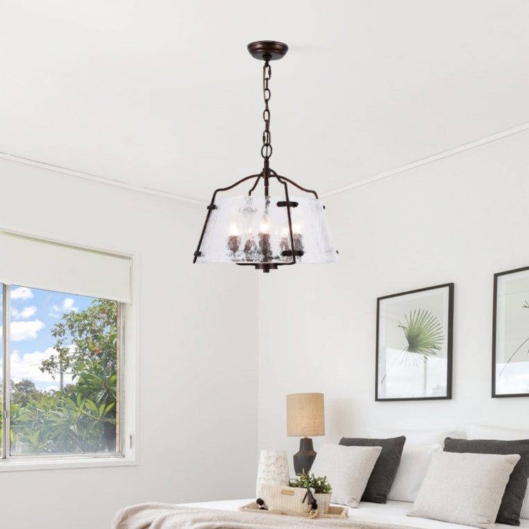 寝室用、伝統的なヴィンテージ透明シリンダー銅ガラス5灯シャンデリア