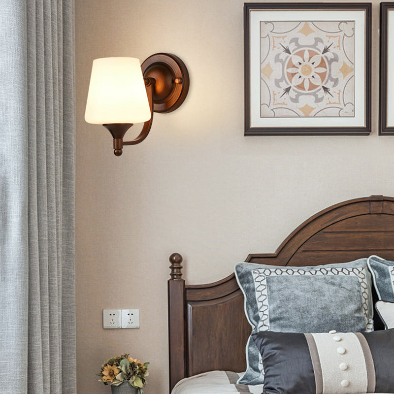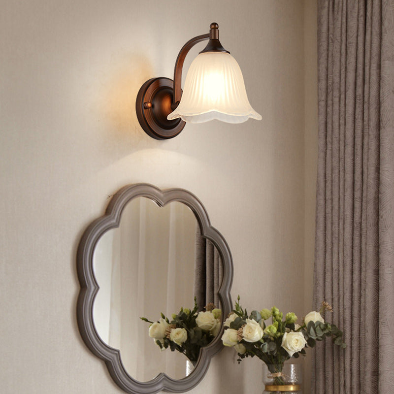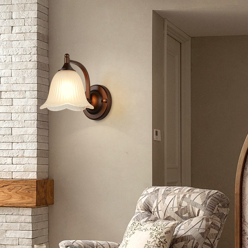 伝統的なヴィンテージ台形アイアンガラス1灯壁取り付け用燭台ランプ(リビングルーム用)