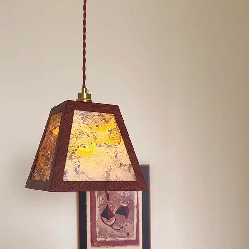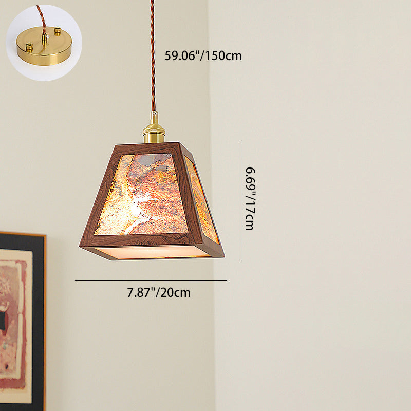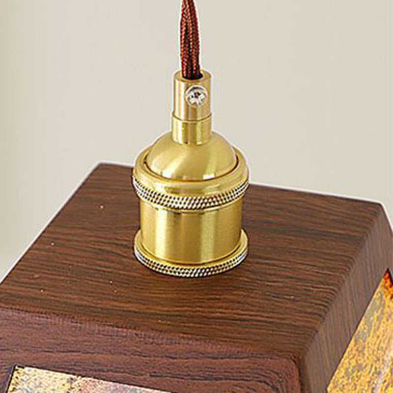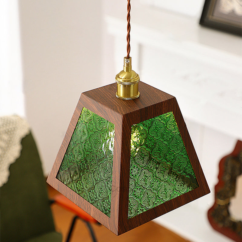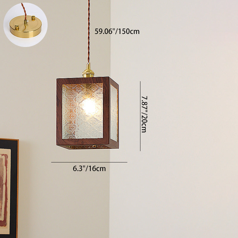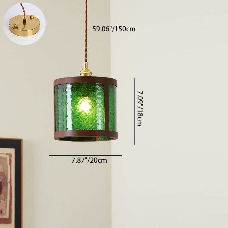伝統的なヴィンテージ台形丸型シリンダー長方形銅金属ガラス1灯ペンダントライト寝室用