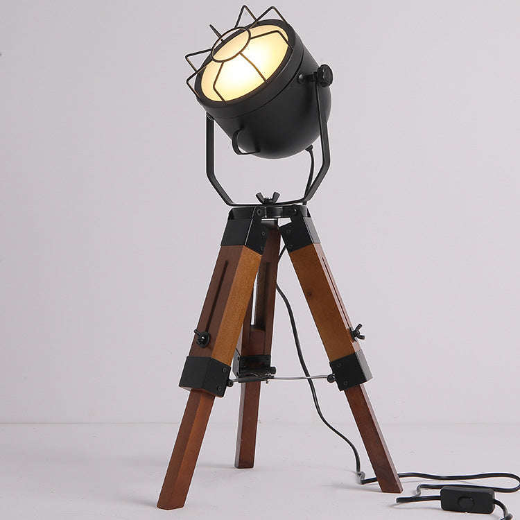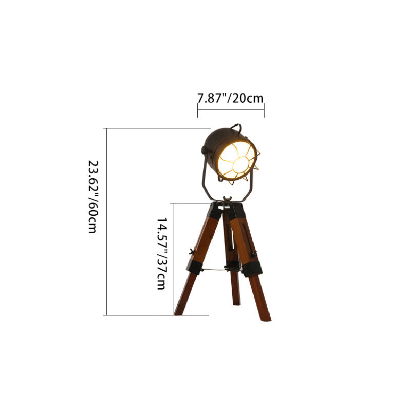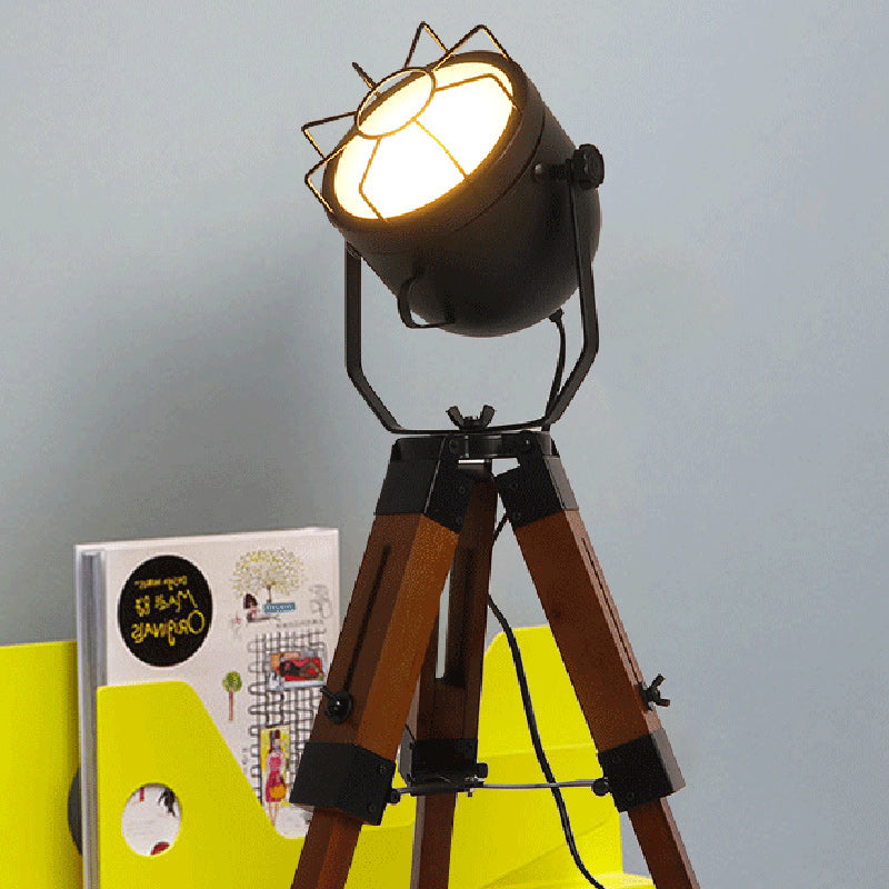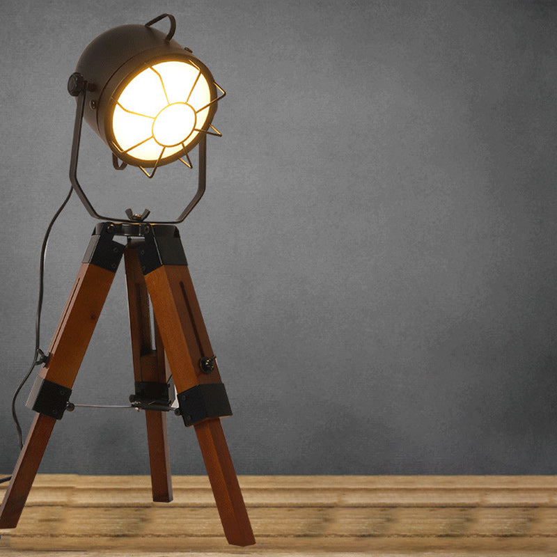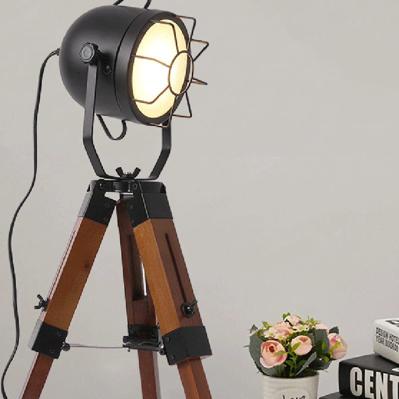 寝室用、伝統的なヴィンテージ三脚ベースシリンダーアイアンウッド1灯テーブルランプ