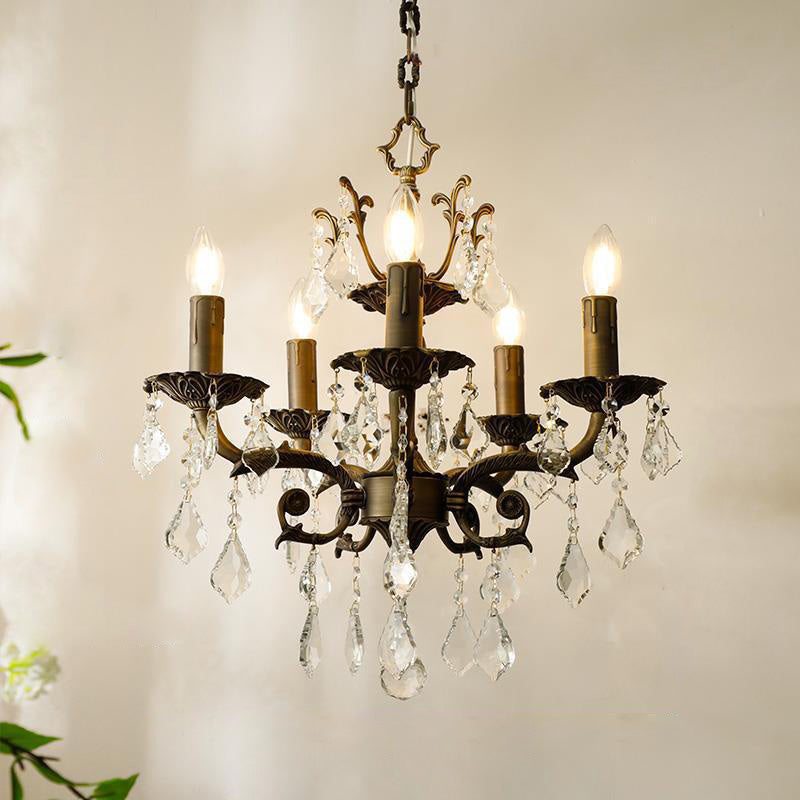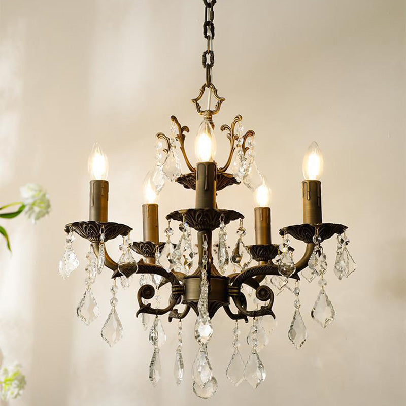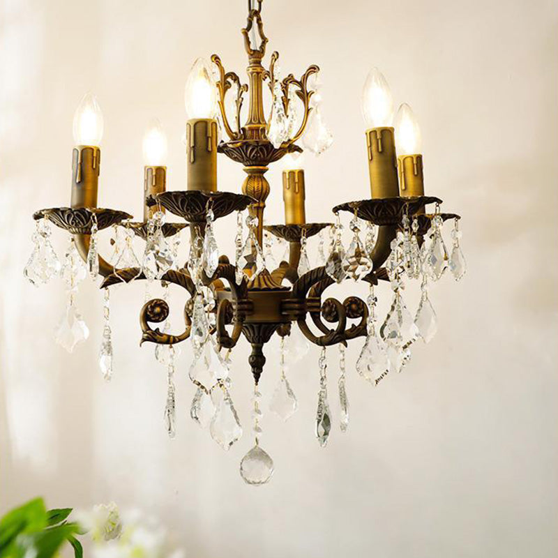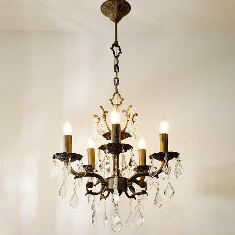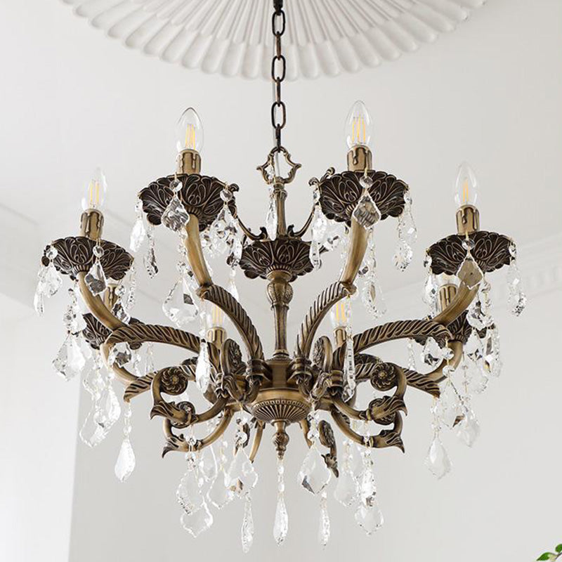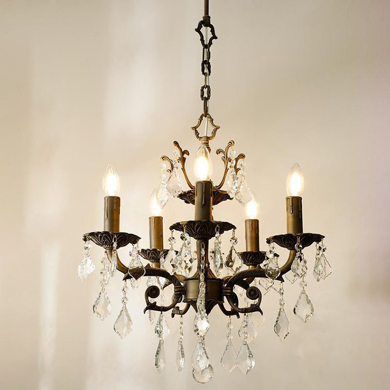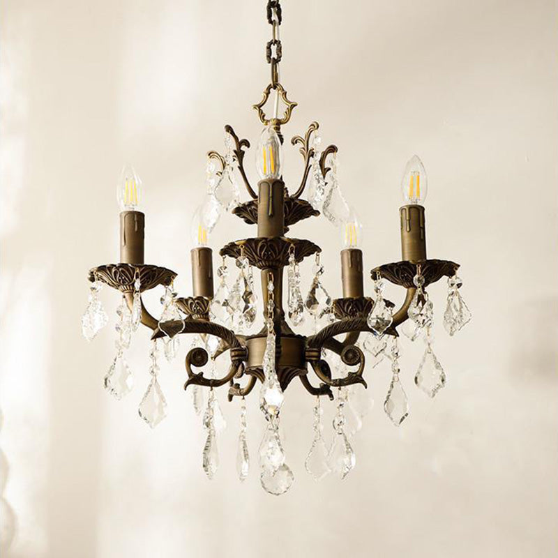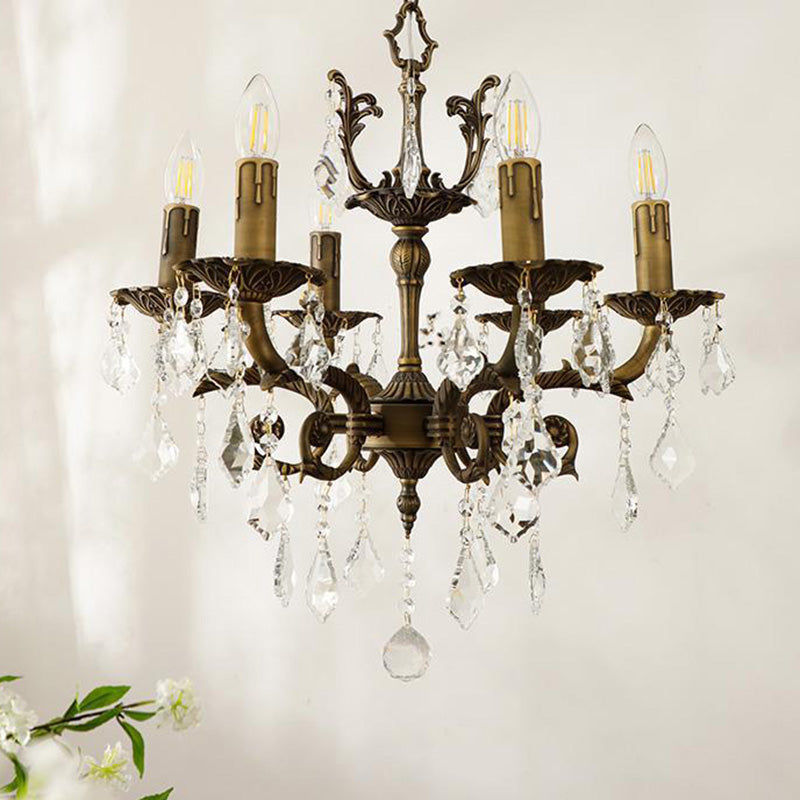 寝室用、伝統的なヴィンテージの小枝キャンドル型銅クリスタル5/6/8灯シャンデリア